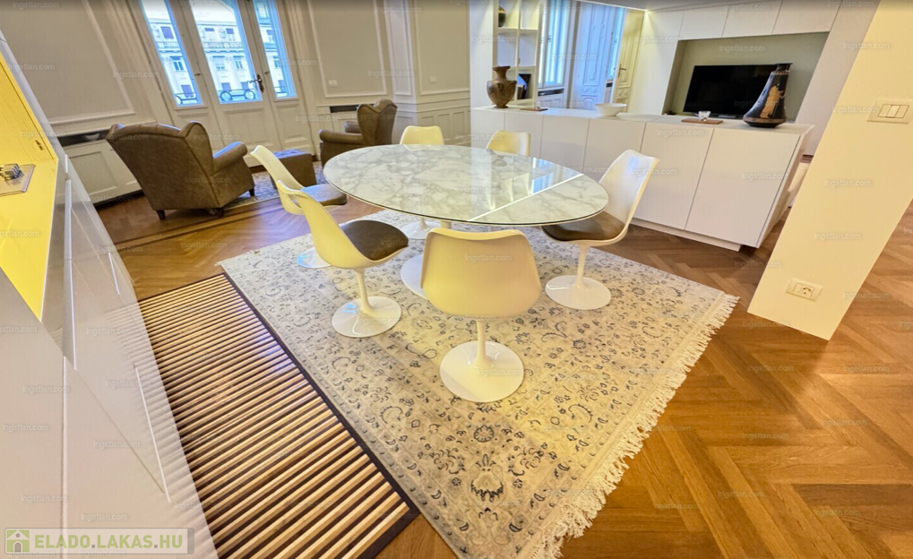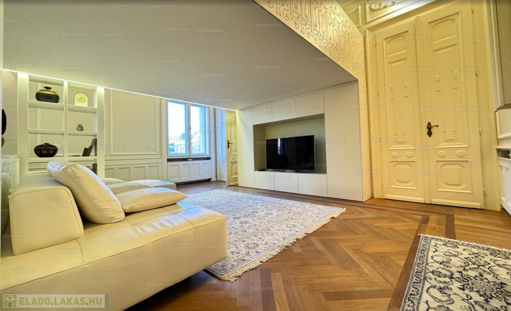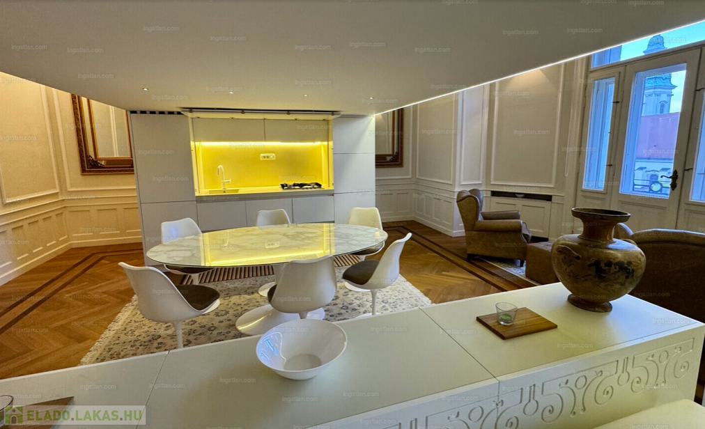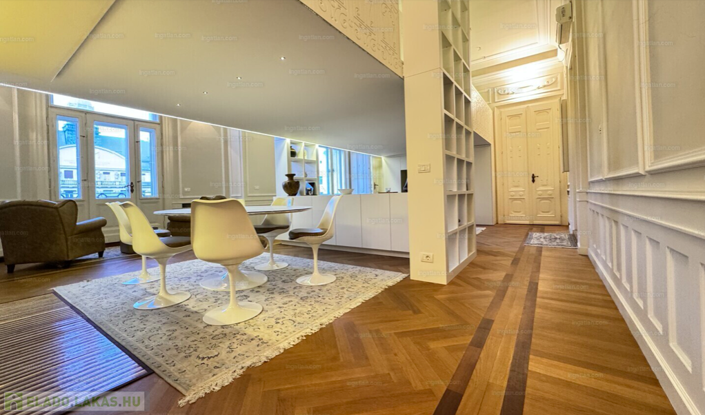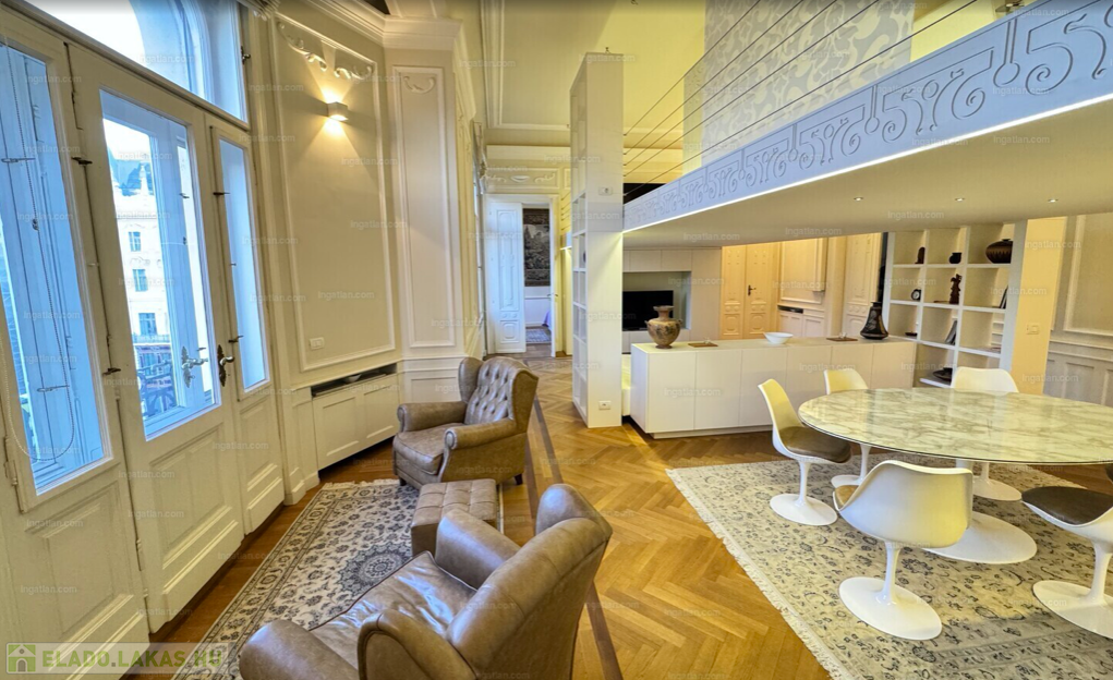 RITKASÁG! FULL DUNAI PANORÁMÁS KÜLÖNLEGES, LUXUS LAKÁS teljes berendezéssel, galériával( háló+dolgozó), 2 fürdővel, klímával, elektromos redőnyökkel, excluzív gépesített konyhával, Dunára , Erzsébet hídra és a Budai hegyekre full panorámás, erkélyes, církó fűtéses lakás, elképesztően gyönyörű szecessziós épületben. Az ingatlan kiválóan alkalmas ritkasága és értékállósága, továbbá adottságai miatt befektetésnek, akár lakásnak, akár egy reprezentatív irodának.Váci utca, M3 metro Duna Corso 2 perc séta távolságnyira.