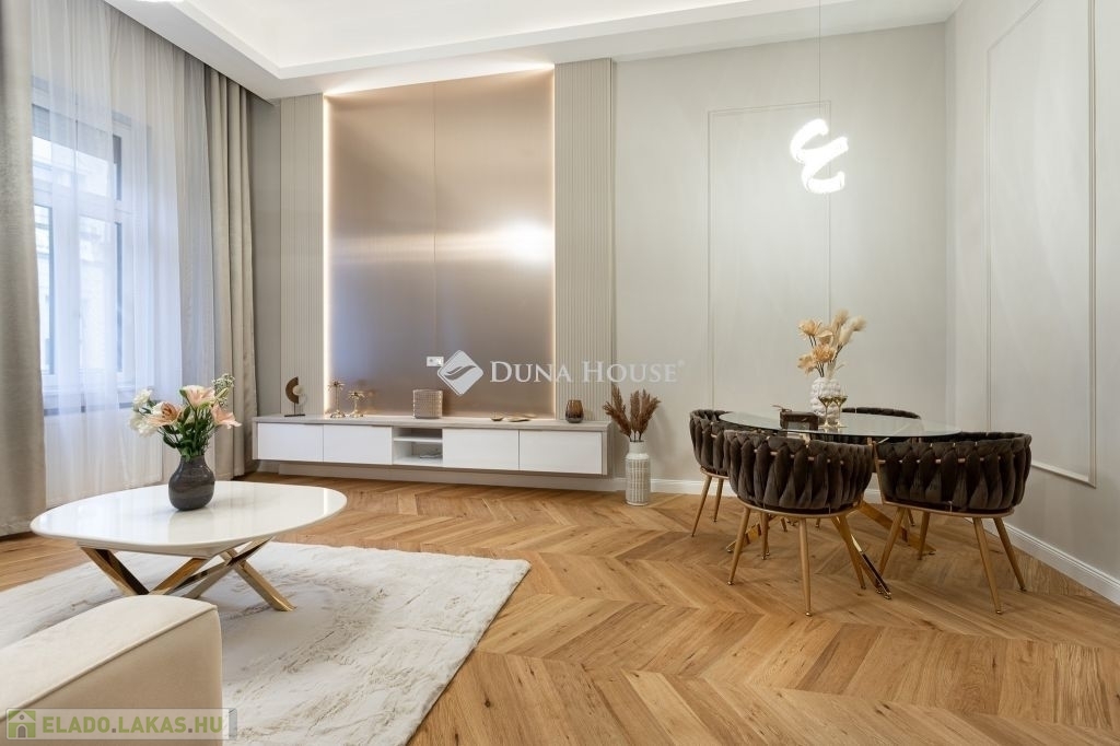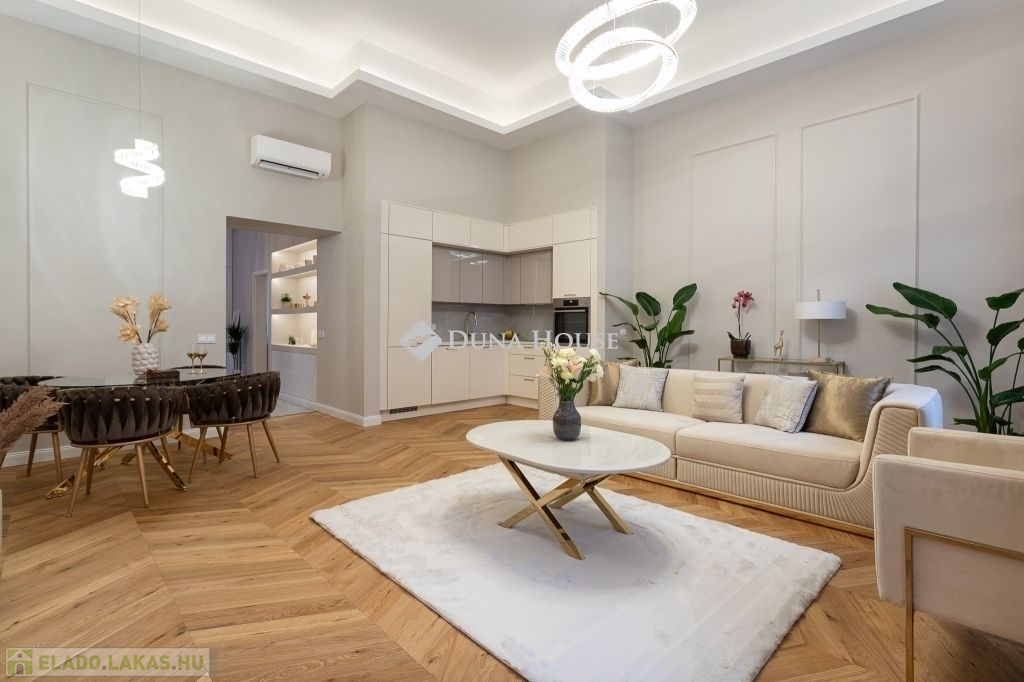 Az V. kerület legkeresettebb részén, a Duna-part közelében kínálom megvételre ezt a 86 m²-es, nappali + 2 hálószobás, két fürdőszobás, gardróbos luxuslakást, amely a klasszikus polgári hangulatot ötvözi a modern eleganciával.