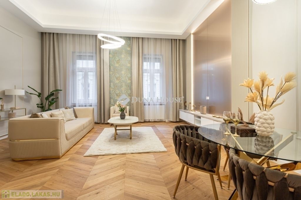 In the heart of Budapests 5th district, just a few steps from the Danube, this 86 m² luxury apartment is now for sale. Featuring a spacious living room, two bedrooms (each with its own bathroom), and a walk-in wardrobe, this home perfectly blends classic grandeur with modern sophistication.