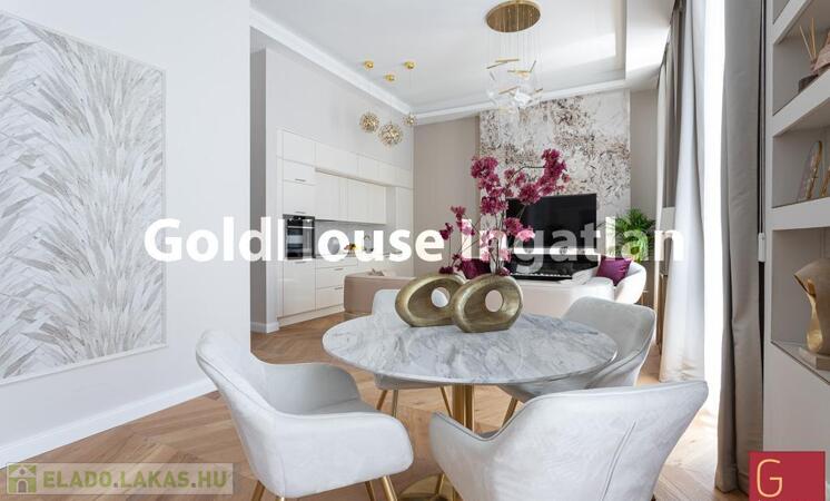 A lakás alapterülete 80 m², amely funkcionálisan három külön bejáratú helyiségből, valamint egy amerikai konyhás nappaliból áll, prémium minőségű beépített bútorzattal és korszerű gépesítéssel rendelkezik. A padlóburkolat külön említést érdemel: egyedi chevron mintás, válogatott tölgyfából készült, mely a belső tér eleganciáját tovább hangsúlyozza. A klimatizált lakásban a műszaki infrastruktúra – beleértve a gépészetet, elektromos hálózatot és nyílászárókat – teljes felújításon esett át, ezáltal megfelel a mai kor műszaki és komfortelvárásainak.