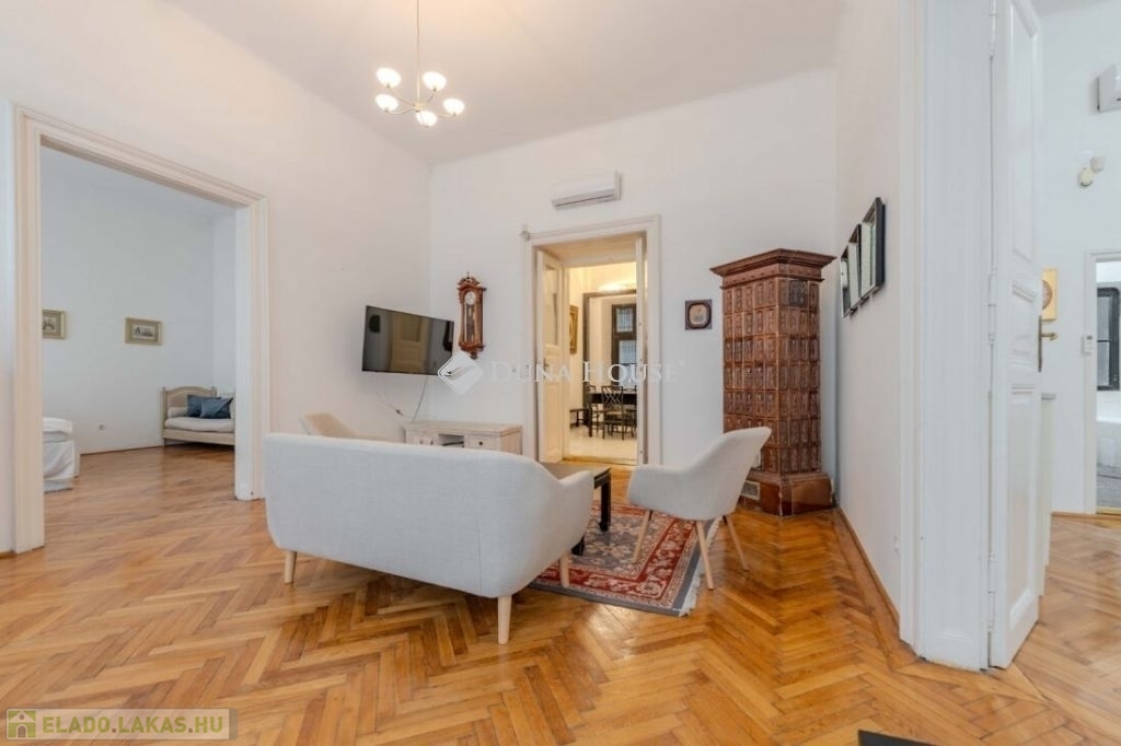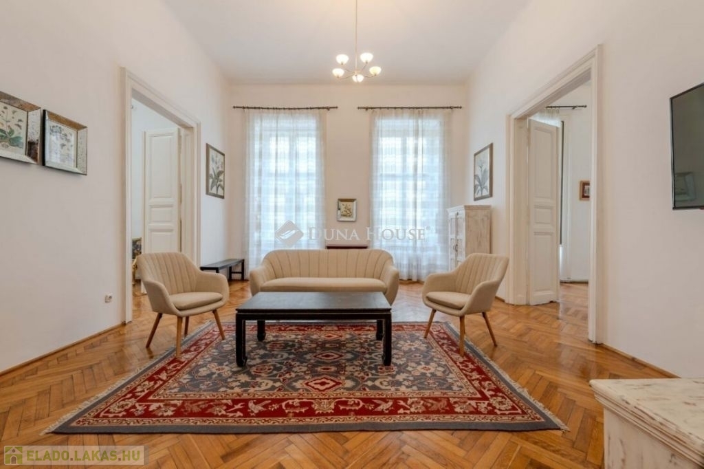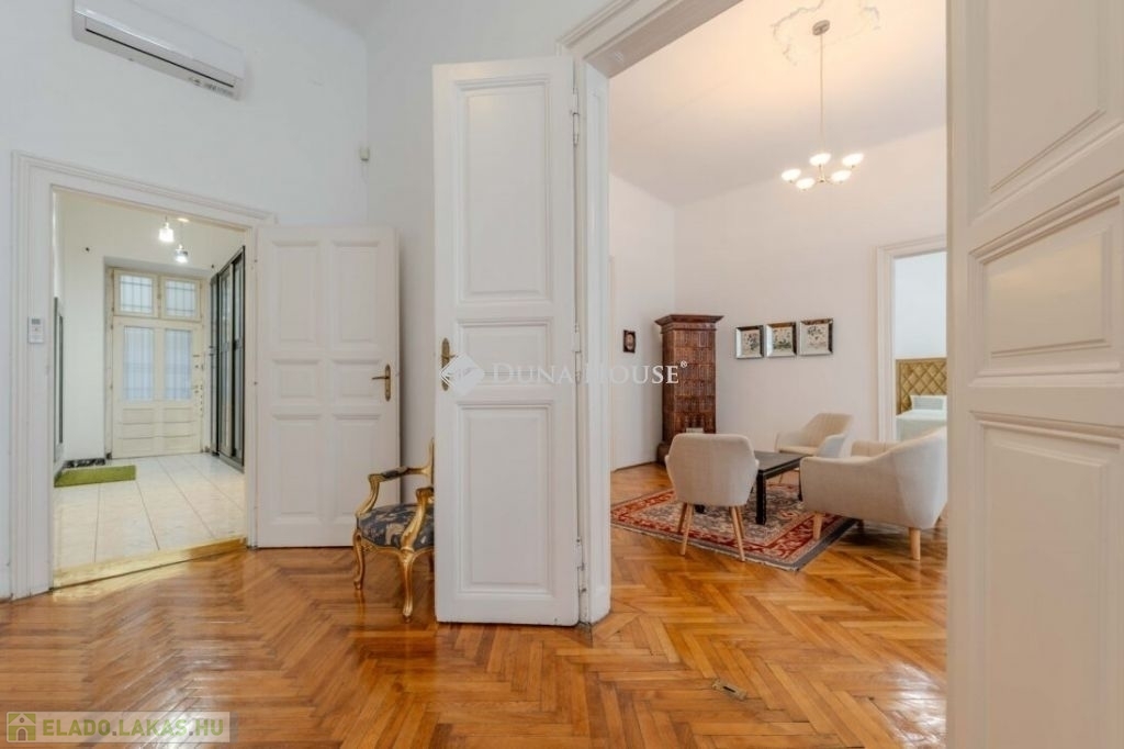 Váci utcában, a Vámház körúti szakaszon, műemlék épületben kínálunk eladásra, egy 1. emeleti, NAGY belmagasságú, tágas nagypolgári lakást.A társasház liftes, nagyon szépen felújított és karbantartott, kamerákkal védett. Itt élt többek között Lajta László neves zeneszerző és népzenekutató.Az ingatlan137 nm. összesen, világos, jó állapotú, minden szobája klimatizált. A szobák és a jelenlegi étkező-közösségi tér is igen tágas. Nappali és 2 külön nyíló hálószobával rendelkezik. Igény esetén kialakítható még egy hálószoba. A lakás azonnal költözhető, tehermentes!További információkért megtekintésre hívjon bizalommal.