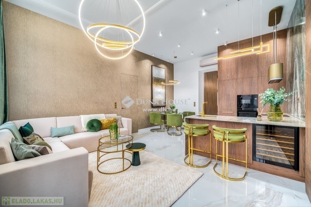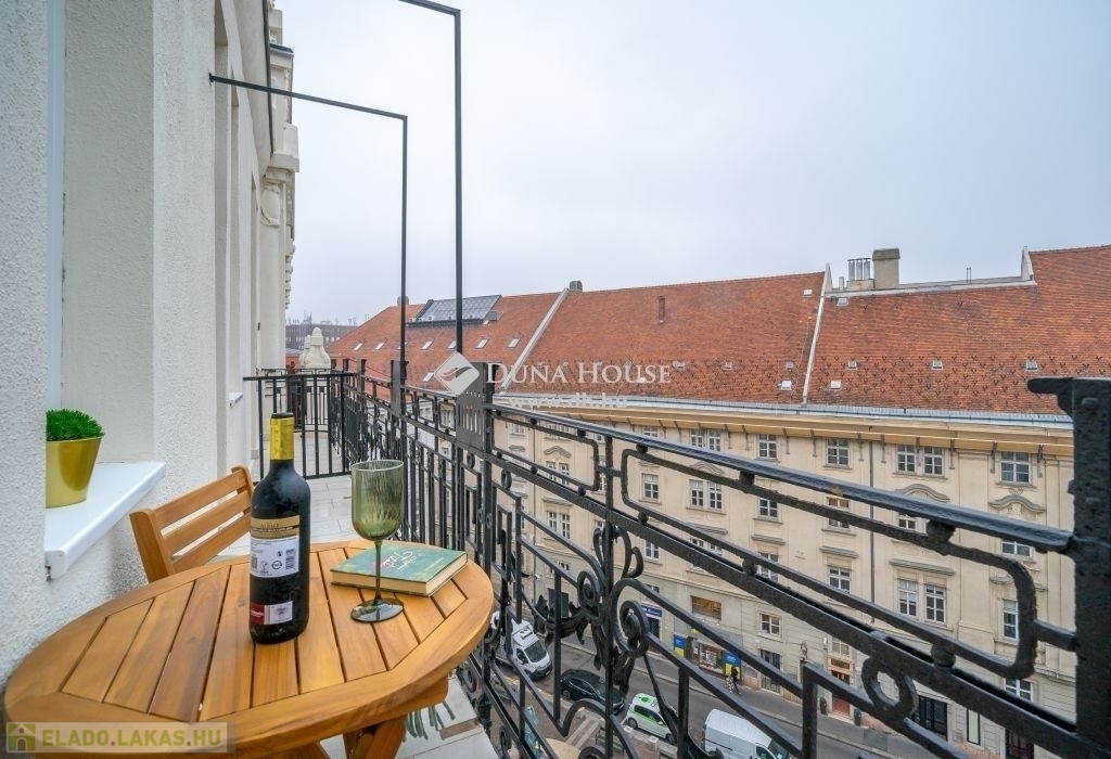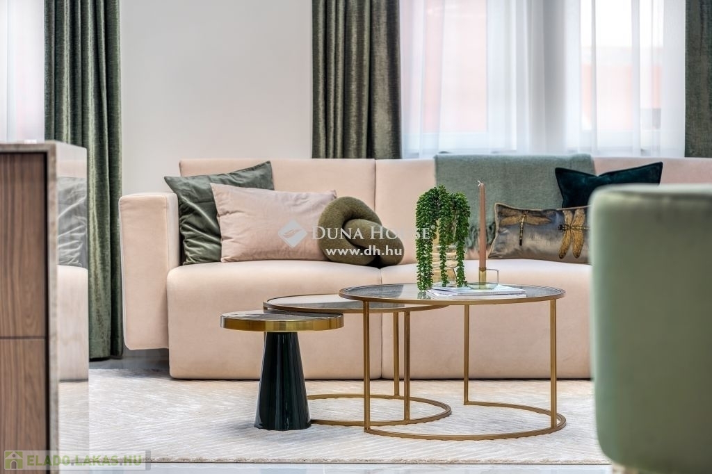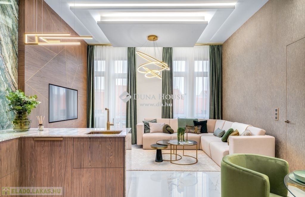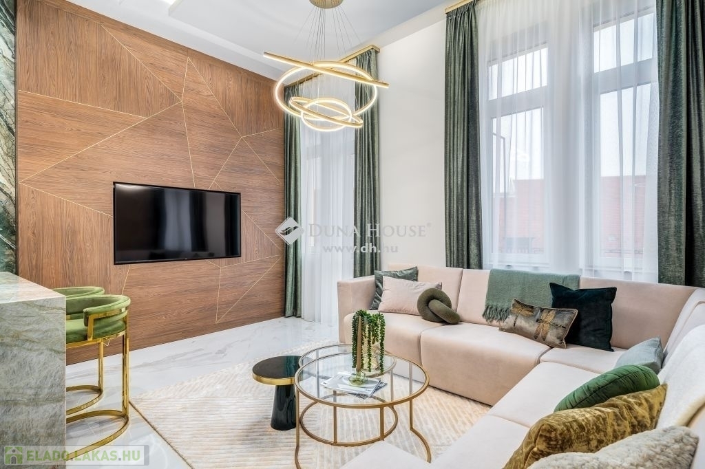 Luxus Otthon a Szomory Dezső Téren – Kivételes Kilátással és Kényelmes ElrendezésselA piacon egyedülálló lehetőséget kínálunk: egy exkluzív, prémium lakást, amely tökéletes harmóniában ötvözi a modern kényelmet és az elegáns dizájnt. A lakás egyedülálló dél-keleti tájolással rendelkezik, lenyűgöző panorámával a Szomory Dezső térre és a Danaidák kútjára, egy olyan környéken, amely a város szívében nyújt nyugodt, mégis élénk atmoszférát.Az ingatlan főbb jellemzői:Alapterület95 m² + 7 m² erkély, amely tökéletes helyszínt biztosít a pihenéshez és a kültéri élményekhez.Elrendezés: A lakásban egy tágas nappali, 2 hálószoba, 2 fürdőszoba (mindegyik külön WC-vel), egy különálló WC és egy elegáns előszoba található.Prémium kivitelezésA 2024-es homlokzati felújítást követően az épület modern és esztétikus megjelenést kapott, míg az ingatlan belső terét a legmagasabb minőségű anyagok és design jellemzik.Fűtés és gépészetA lakás gáz kombi cirkóval, teljes padlófűtéssel és design törülközőszárítókkal biztosítja a maximális komfortot. A fürdőszobák Wellis káddal, Grohe csaptelepekkel és Arezzo design szaniterekkel vannak felszerelve.Minőségi burkolatokhelyiségeket olasz prémium burkolatok (Lafaenza, Vallelunga, Infinity, Naxos, Monocibec) és Bauwerk Unopark enyhén füstölt tölgy fapadló díszíti.Kültéri nyílászárók: A három rétegű, hőszigetelt üveggel szerelt műanyag nyílászárók kiváló hő- és hangszigetelést biztosítanak.Beltéri nyílászárók: Egyedi prémium bútor- és üveg ajtók, amelyek eleganciát és modern stílust adnak a belső térnek.Prémium felszereltségBeépített konyhai gépek: AEG készülékek (hűtőszekrény, indukciós főzőlap, mikrohullámú sütő, sütő, mosogatógép, borhűtő) biztosítják a magas szintű konyhai élményeket.Szórakozás és kényelem: A lakás 3 db, 4K felbontású Samsung TV-vel (65 és 55) és AEG mosógéppel, szárítógéppel van felszerelve.Design és dekoráció: A lakás egyedi tervezésű szagelszívóval és Fisher design hűtő-fűtő klímaberendezésekkel is rendelkezik, hogy minden igényt kielégítsen. A lakás díszítése a Kare, Zara Home és más prémium márkák bútorai és kiegészítői révén éri el a tökéletes összhangot.További információk:Az épület nem műemlék jellegű, 78 albetéttel rendelkezik (lakás, iroda, üzlet).Közös költség: 23.685 Ft/hó, amely tartalmazza a víz és csatorna díját is. A felújítás során egyedi vízórát építettek be.Ár:Lakás ára: 700.000 EURBútorzat és berendezés ára: 65.000 EURA bútorok megvásárlása kötelező!Ez a különleges ingatlan egyedülálló lehetőséget kínál mindazok számára, akik a luxus és a kényelem iránti igényüket a legmagasabb szintre emelnék.Ne hagyja ki ezt a páratlan ajánlatot, és lépjen kapcsolatba velem még ma!