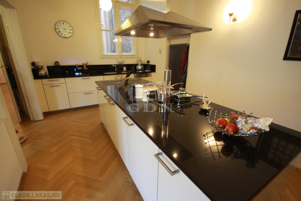 Eladó az V. kerület Váci utcában egy 5 emeleti, panorámás, 3 szoba, hall, nagy konyha, 4 nm erkélyes, 146 nm, közepes állapotú, cirkó fűtéses lakás.