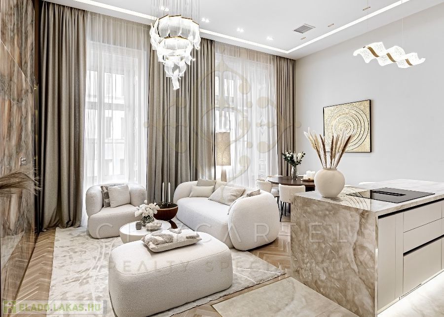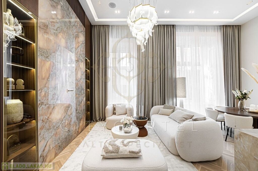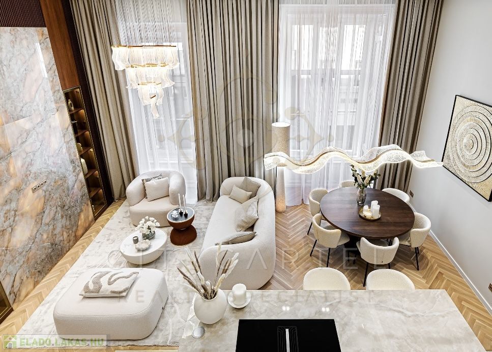 Az V. kerület szívében, presztízsértékű utcában, 96 nm-es, kétszintes, nappali + 2 hálószobás + 2 fürdőszobás luxuslakás, amely minden részletében a minőséget, az eleganciát és a modern otthonérzetet képviseli.