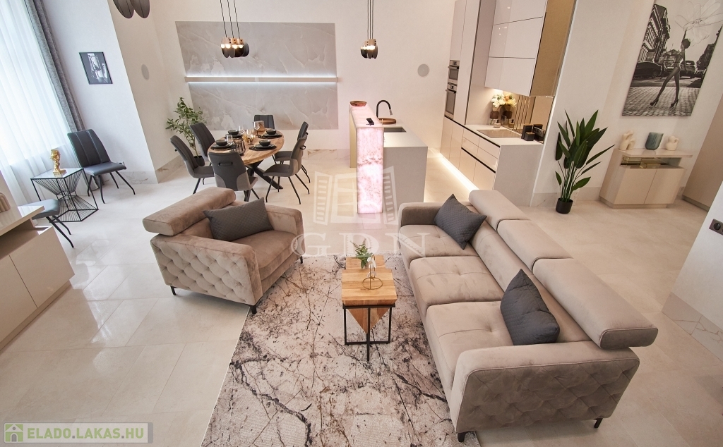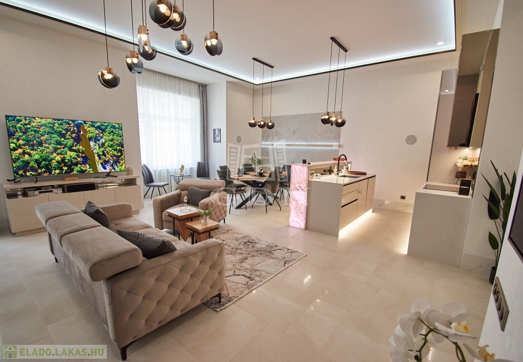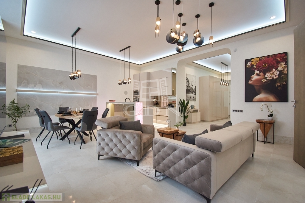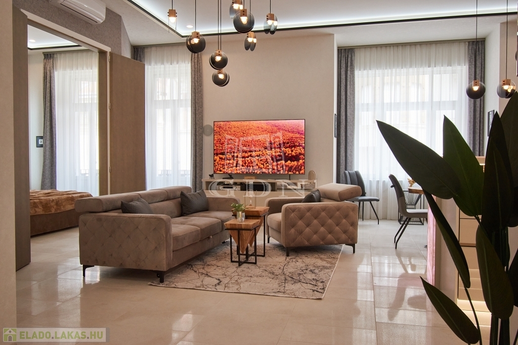 V. kerületben, a belváros szívében, eladásra kínálunk egy 100 m2-es (valóságban 107 m2), 3 szobás (2 háló + amerikai konyhás nappali), dupla komfortos, egyedien és PRÉMIUM minőségben felújított EXKLUZÍV, LUXUS lakást.