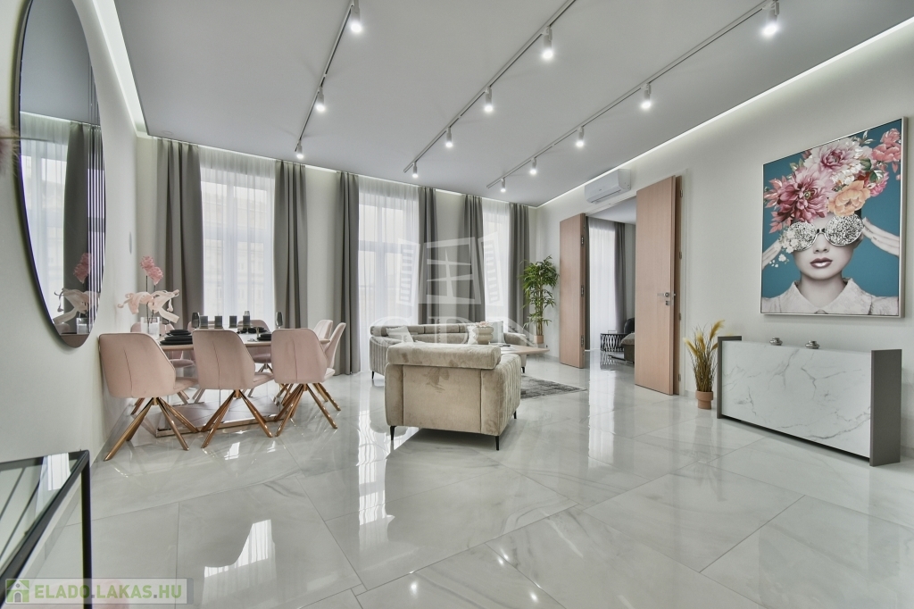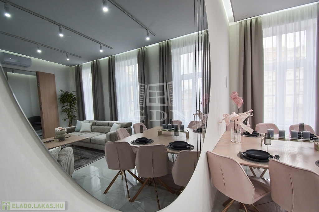V. kerületben, a Károly körúton -Zsinagógára néző kilátással-, eladásra kínálunk egy 117 m2-es (valóságban 121 m2), 4 szobás (3 háló + amerikai konyhás nappali), dupla komfortos, egyedien és PRÉMIUM minőségben felújított EXKLUZÍV, LUXUS lakást.