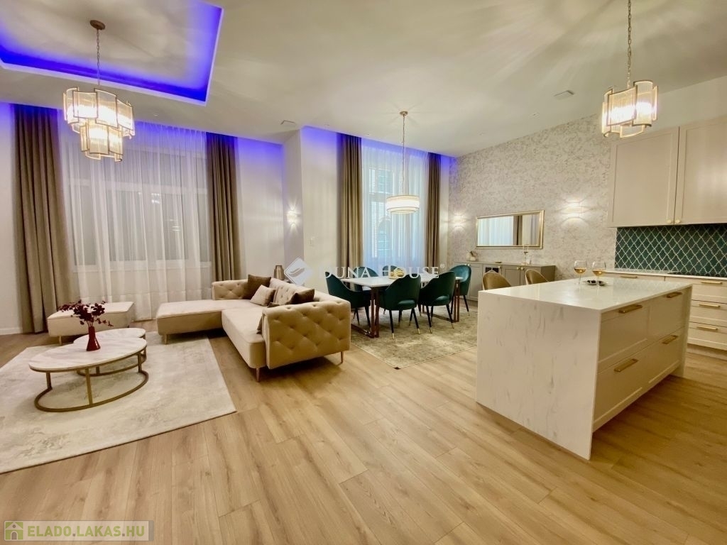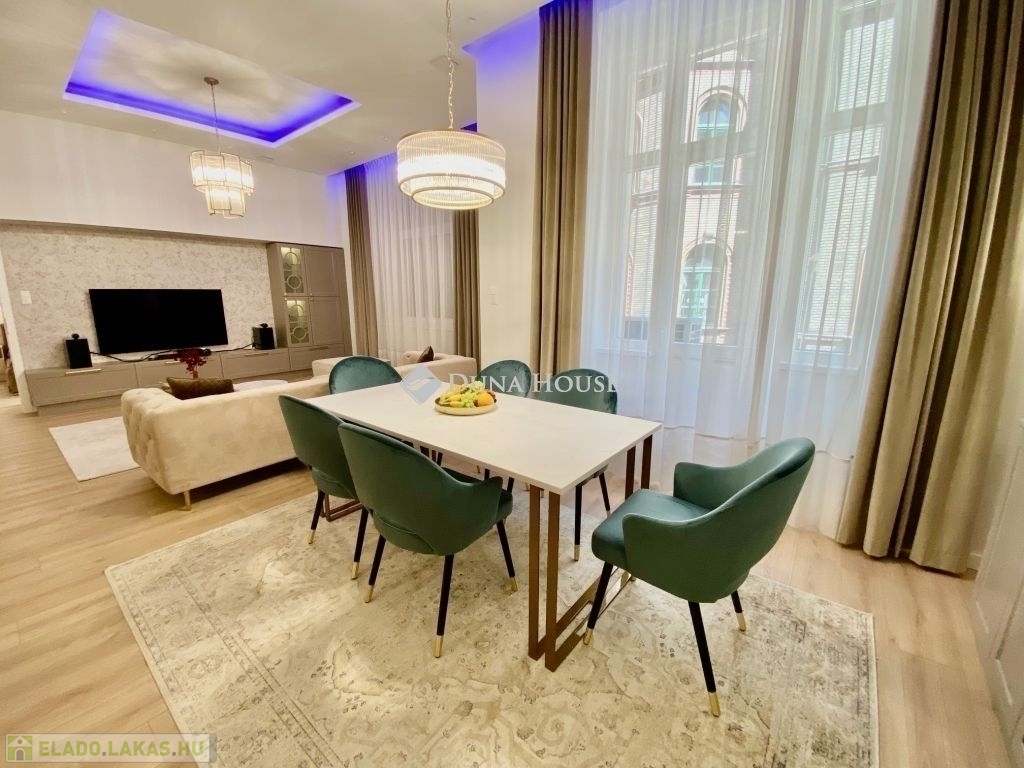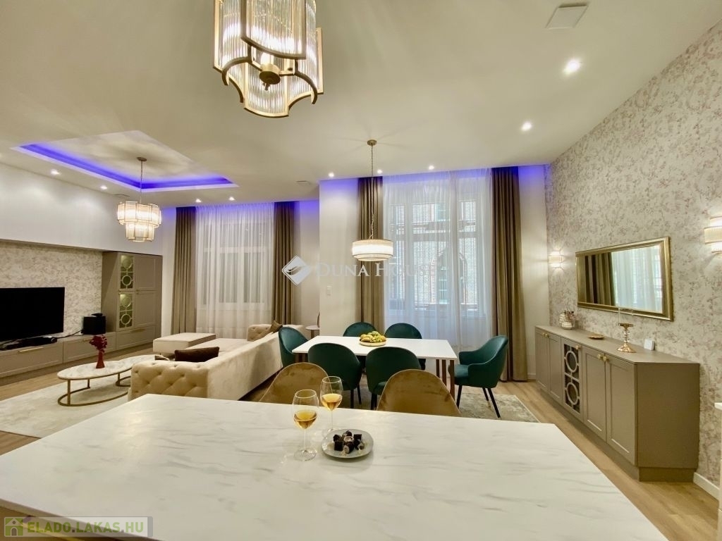 Eladó luxuslakás a Belgrád rakparton, 141 m2-en !Budapest egyik kedvelt részén, a Belgrád rakparton kínálunk megvételre egy teljes körűen felújított, prémium minőségű , 141m2-es luxuslakást! A lakás elrendezése kiváló: a tágas nappali-konyha-étkező központi helyet foglal el, míg a három hálószoba és a két fürdőszoba a maximális kényelmet szolgálja. Ideális választás családoknak, üzletembereknek, illetve befektetésre is, hiszen lokalizációja és minősége kiemelkedő értékállóságot biztosít.A teljes körű felújítás során a födém cseréje megtörtént, modern padlófűtés került kialakításra, amely optimális hőmérsékletet biztosít minden helyiségben. Energiatakarékos mennyezeti hűtőrendszer a kellemes nyári hőmérséklet érdekében. Modern szellőztető rendszer biztosítja az állandó, egészséges belső klímát. Beépített vízlágyító rendszer, az élettartam növelése és a vízkőképződés minimalizálása érdekében.Vadonatúj, prémium minőségű fa nyílászárók, amelyek kiváló hő- és hangszigetelést garantálják. Árnyékolását elektromos redőnyök biztosítják. Teljesen megújított víz-, villany- és fűtés rendszer. Korszerű okos otthon.Élje át a belvárosi életstílust a Duna partján, egy exkluzív otthonban!További információért és megtekintésért várom megkeresését!