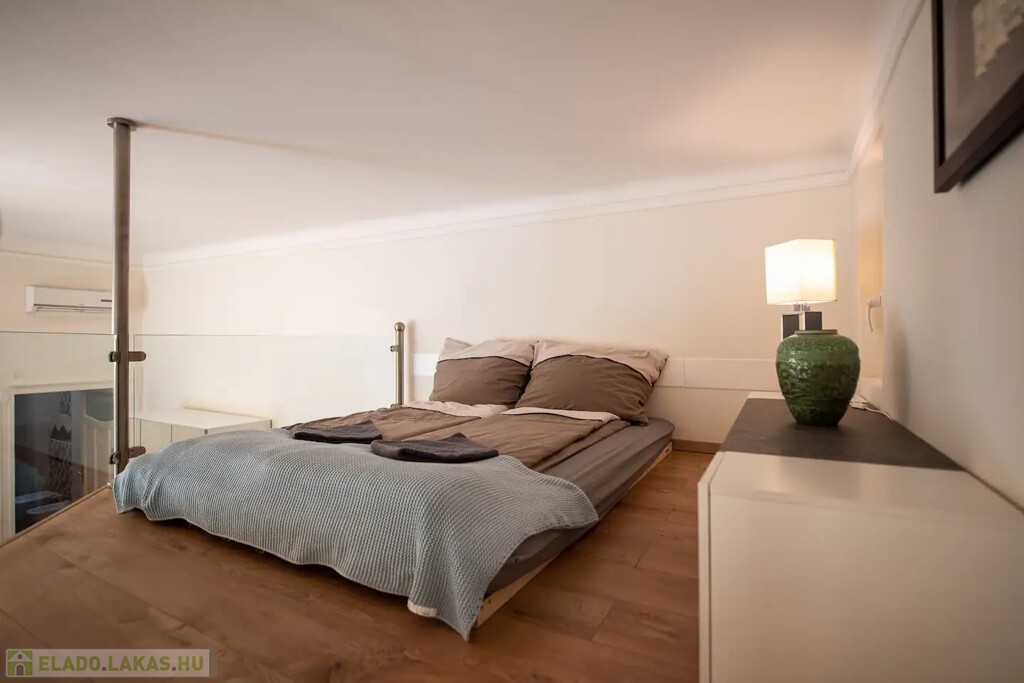 A középső 69nm-es udvari lakás, amerikai konyhás nappali + 1 hálós + alvó galériás.