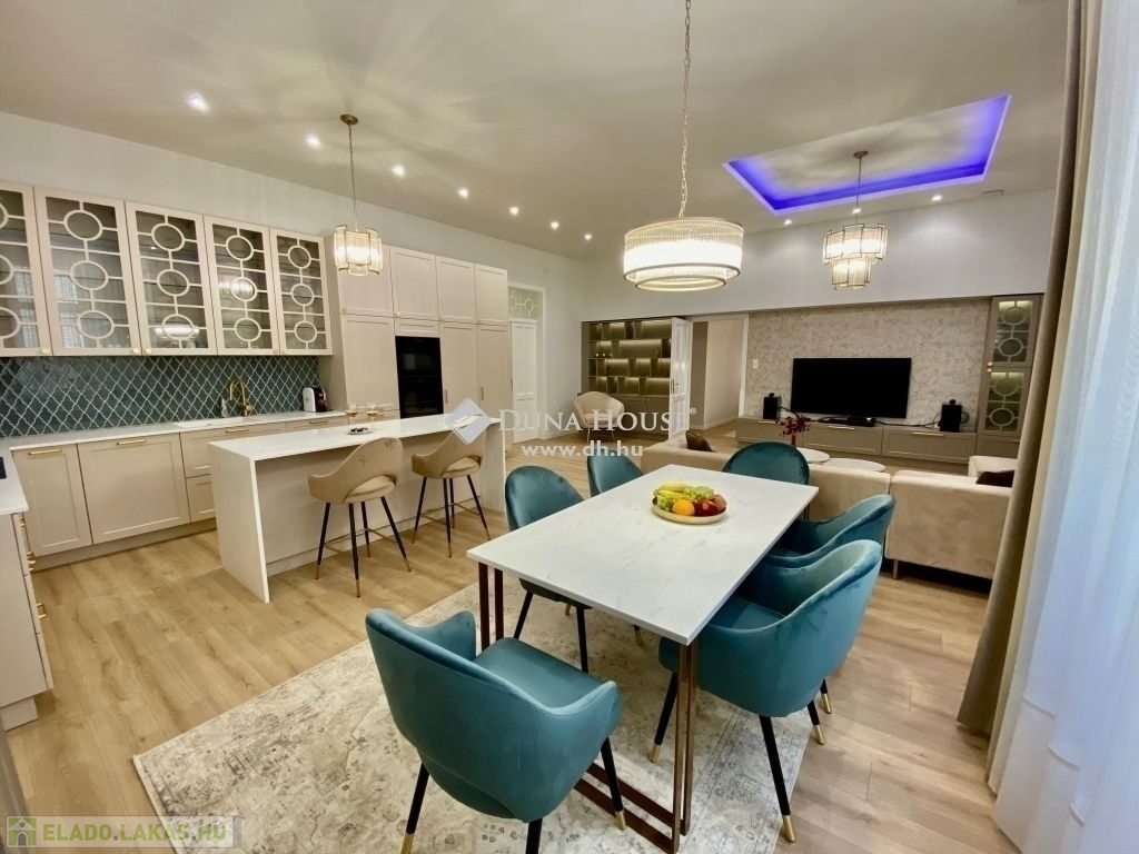 Eladó luxuslakás a Belgrád rakparton, 141 m2-en !Budapest egyik kedvelt részén, a Belgrád rakparton kínálunk megvételre egy teljes körűen felújított, prémium minőségű , 141m2-es luxuslakást! A lakás elrendezése kiváló: a tágas nappali-konyha-étkező központi helyet foglal el, míg a három hálószoba és a két fürdőszoba a maximális kényelmet szolgálja. Ideális választás családoknak, üzletembereknek, illetve befektetésre is, hiszen lokalizációja és minősége kiemelkedő értékállóságot biztosít.A teljes körű felújítás során a födém cseréje megtörtént, modern padlófűtés került kialakításra, amely optimális hőmérsékletet biztosít minden helyiségben. Energiatakarékos mennyezeti hűtőrendszer a kellemes nyári hőmérséklet érdekében. Modern szellőztető rendszer biztosítja az állandó, egészséges belső klímát. Beépített vízlágyító rendszer, az élettartam növelése és a vízkőképződés minimalizálása érdekében.Vadonatúj, prémium minőségű fa nyílászárók, amelyek kiváló hő- és hangszigetelést garantálják. Árnyékolását elektromos redőnyök biztosítják. Teljesen megújított víz-, villany- és fűtés rendszer. Korszerű okos otthon.Élje át a belvárosi életstílust a Duna partján, egy exkluzív otthonban!További információért és megtekintésért várom megkeresését!