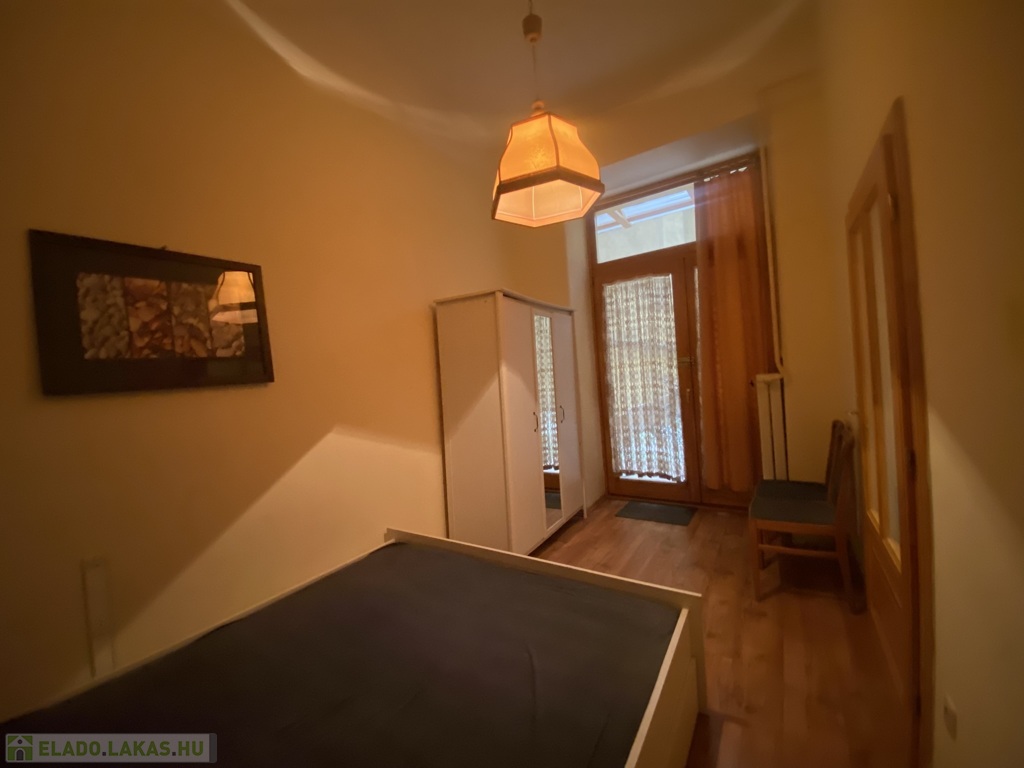 tágas hálószoba, amelyből közvetlen kijárat nyílik egy kis belső udvarra.