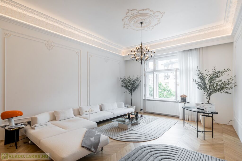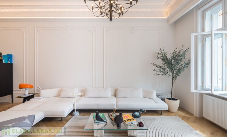 Eladásra kínálunk Budapest szívében, az V. kerületben egy 200 m²-es, 4 szobás, magas színvonalon kivitelezett luxuslakást. Az ingatlan elegáns részén, egy klasszikus jellegű, jó állapotú épületben helyezkedik el, és minden részletében a minőség, kényelem és kifinomultság dominál.