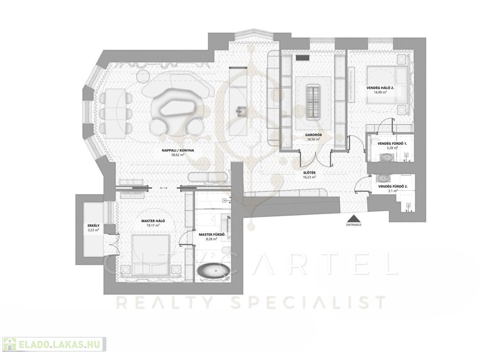 Budapest szívében, az V. kerületben várja új tulajdonosát ez a lenyűgöző, luxus téglalakás, amely egyedülálló lehetőséget kínál a városi élet szerelmeseinek. Az ingatlan 140 négyzetméter alapterülettel rendelkezik, így bőséges teret biztosít a mindennapi kényelmet és stílust keresők számára.