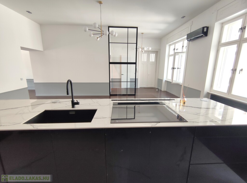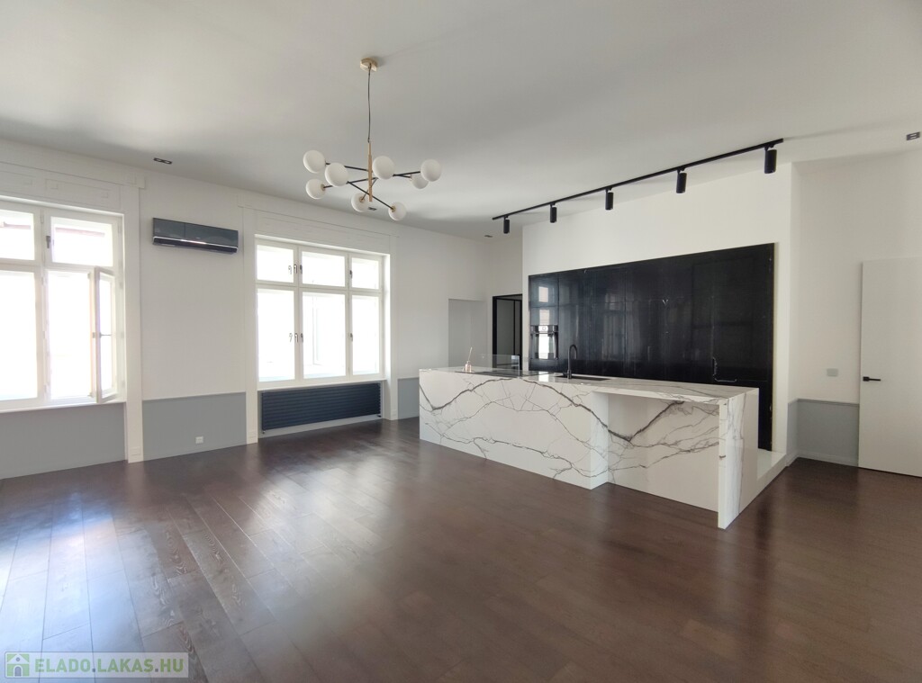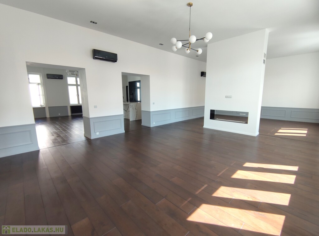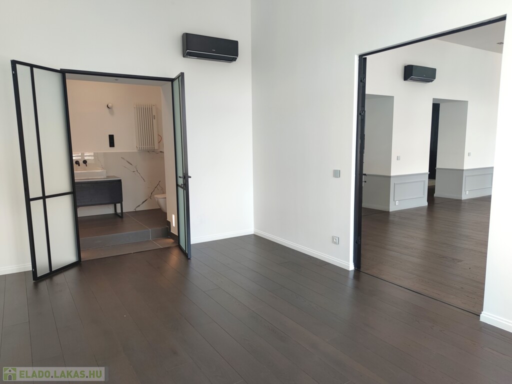 Art deco stílust követő, igényes lakásfelújítás. Nappali, dolgozó + étkező konyha beépített gépekkel + 2 gardróbszoba + 4 hálószoba + 3 fürdőszoba. 3 rétegű ablakok elektromos redőnyökkel.