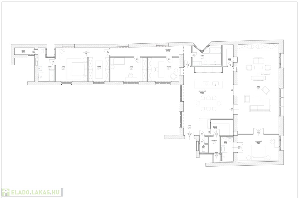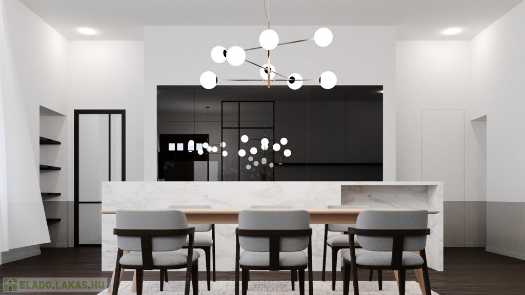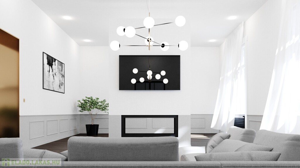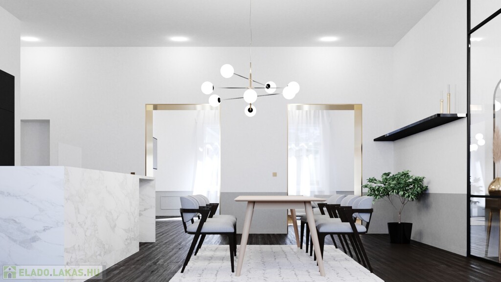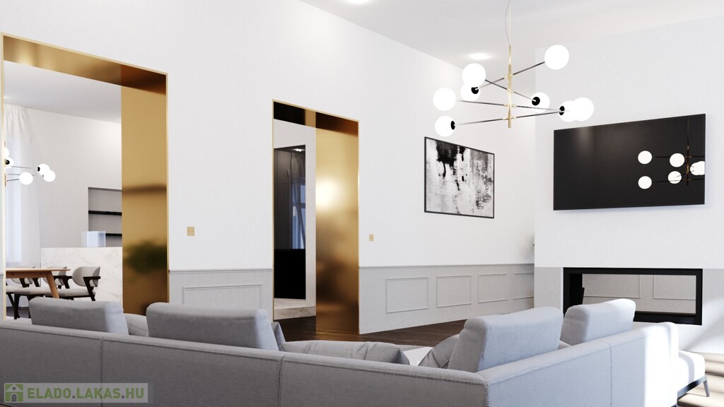 Art deco stílust követő, igényes lakásfelújítás. Nappali, dolgozó + étkező konyha beépített gépekkel + 2 gardróbszoba + 4 hálószoba + 3 fürdőszoba. 3 rétegű ablakok elektromos redőnyökkel.