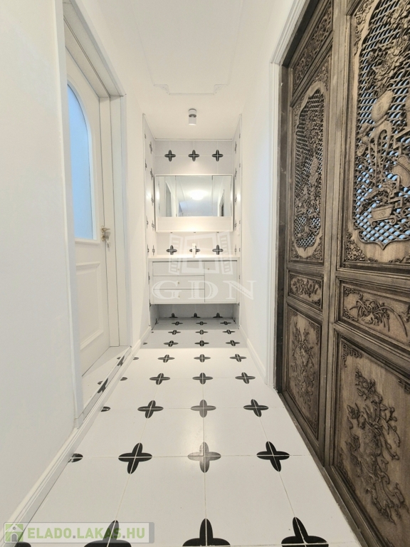 V. kerületben, a Károlyi-kert közelében, jó állapotú, liftes társasház földszintjén, eladásra kínálok, egy udvari nézetű, a tulajdoni lapon 45 m2-es (a valóságban 90 m2) belső kétszintes, 3 szobás, dupla komfortos, műszakilag-esztétikailag felújított ( víz, villany vezetékek cseréjén átesett, műanyag nyílászárókkal, gépesített konyhabútorral szerelt) alacsony fenntartású téglalakást.