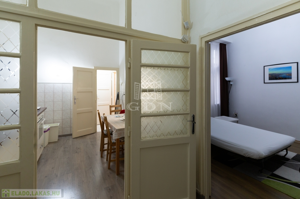 Kiváló helyen, a Gellért heggyel szemközti oldalon, a Szabadság- és Erzsébet híd között, a Duna partnál, kiváló elosztású, két külön bejáratú szobás (mindkét szobán két ablak), ablakos fürdőszobás, jelenleg rövid távú bérbeadásban hasznosított lakás eladó, mely egy zárt folyosóról nyílik.