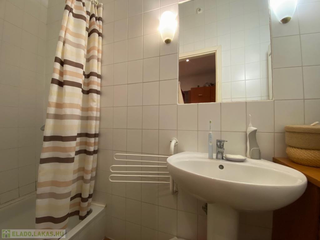 A fürdőszoba zuhanyzós, a meleg vizet gázvízmelegítő szolgáltatja, a WC pedig külön helyiségben van, ablakos.