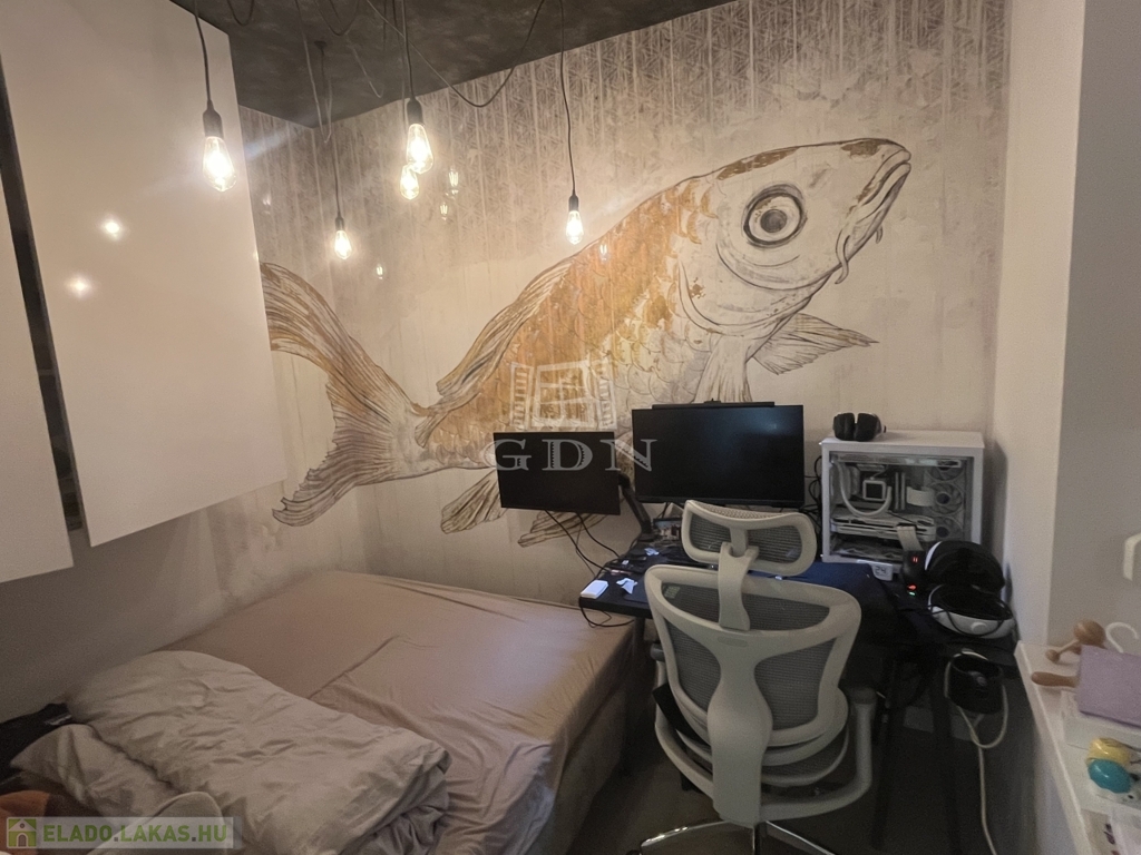 A lakás minden négyzetcentije átgondolt, modern és kényelmes. A teljesen gépesített konyha mosogatógéppel, sütővel és beépített megoldásokkal vár, így kis mérete ellenére mindent tud, amire csak szükséged lehet. A hálószoba bútorai méretre készültek, a kanapé és az ágy pedig Milánóból, kézzel készült darabok – valódi olasz minőség.