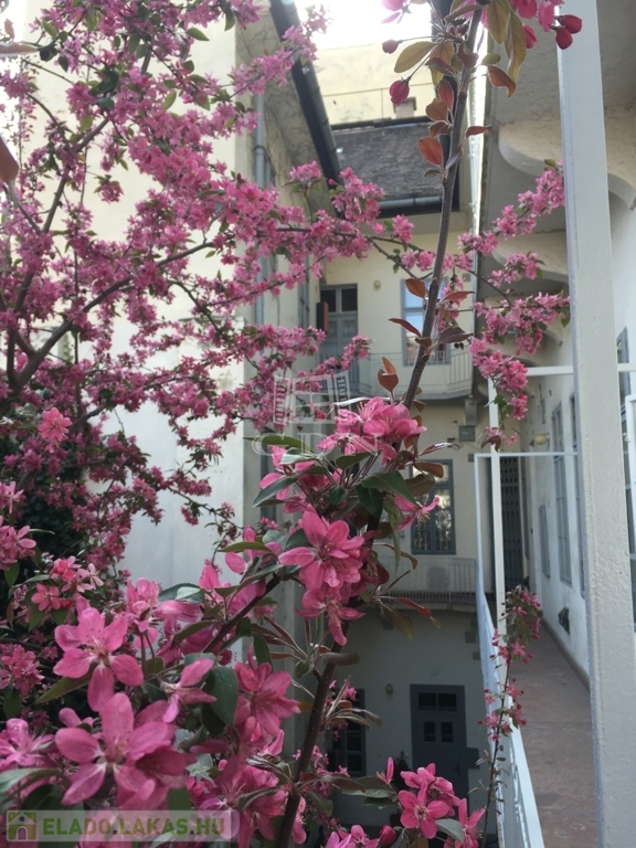 A lakás déli tájolású, az ablakok a templom kertjére néznek, ami különleges atmoszférát ad a térnek.