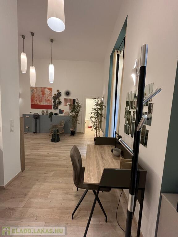 A lakás teljes körűen, lakberendező közreműködésével került kialakításra, prémium minőségben. A nagy belmagasság lehetővé tette egy kényelmes hálógaléria kialakítását.