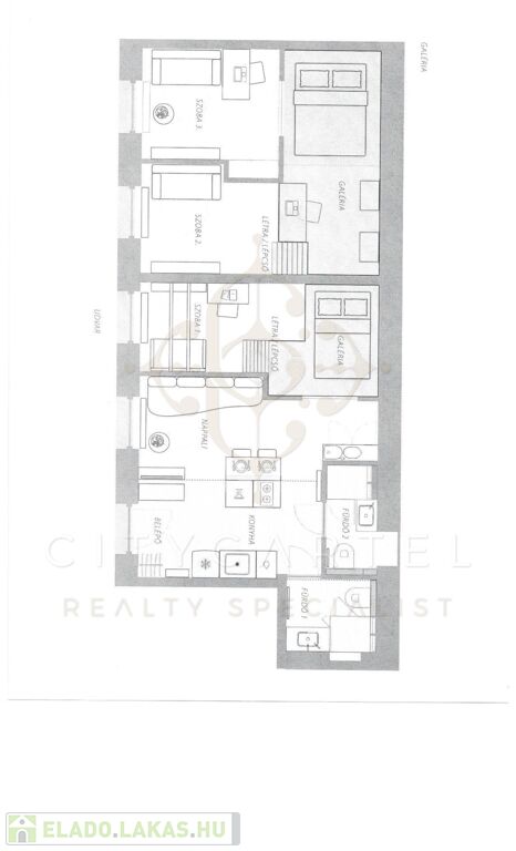 A tulajdoni lapon 71 nm-es lakás a nagy belmagasságnak köszönhetően galériákkal lett kiegészítve, így az alapterület minden négyzetmétere hasznosan kihasznált.