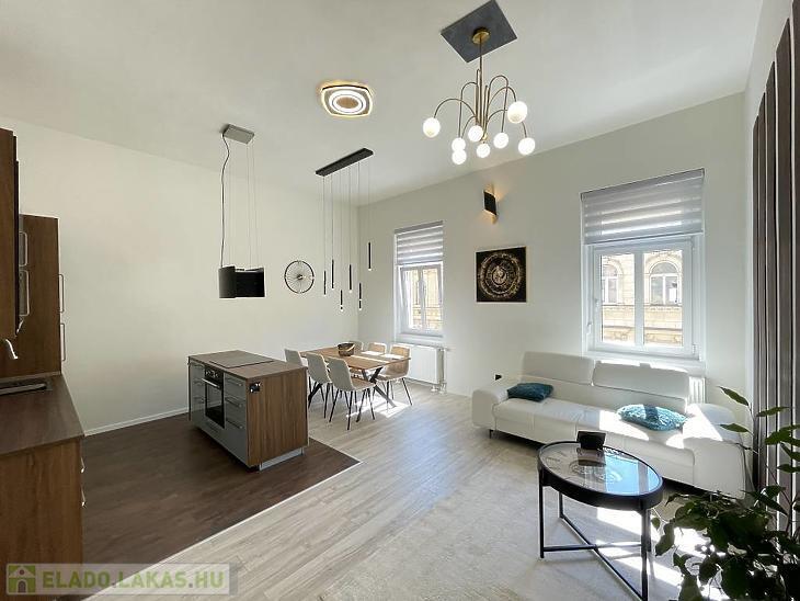 A felújítás során minden részletre ügyeltek, korszerű burkolatok, minőségi konyha és fürdőszoba, valamint egy komplett okos otthon rendszer teszi még kényelmesebbé és biztonságosabbá az ingatlant.