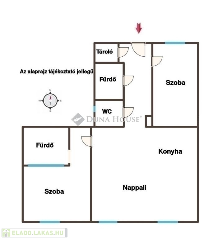 A lakás rendkívül jó beosztású, minden helyiség külön nyílik, napfényes és tágas terekkel.
