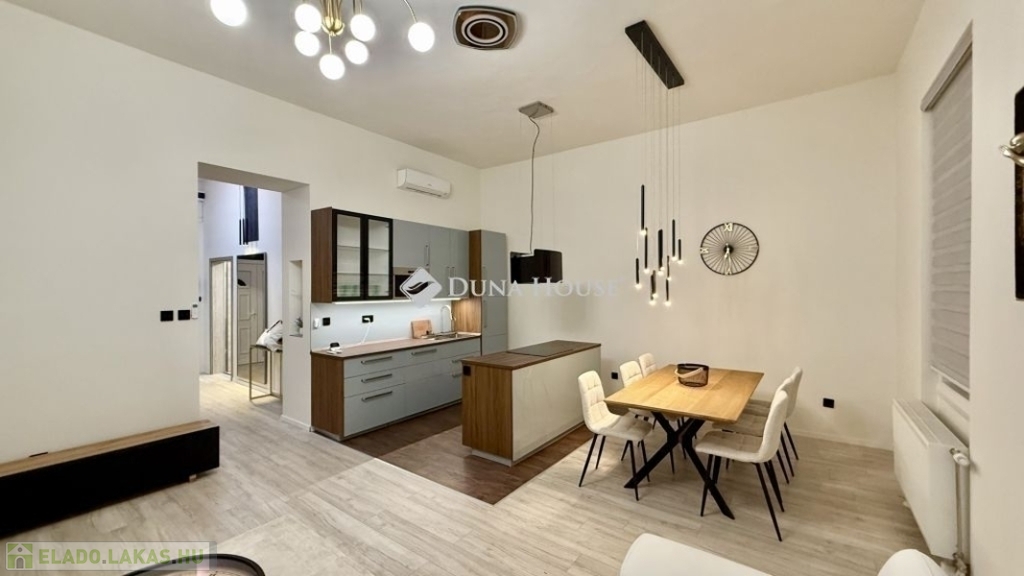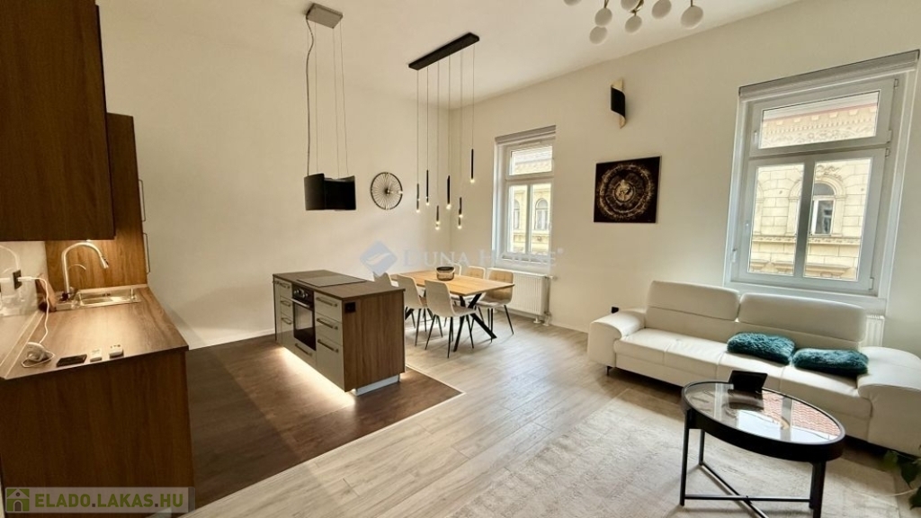A 70 m²-es, harmadik emeleti, délidélnyugati tájolású lakás egy 1910-es években épült, liftes, rendezett társasházban található. Az ingatlan 2025-ben teljeskörű, prémium minőségű felújításon esett át, modern technológiával és kifinomult belső kialakítással.