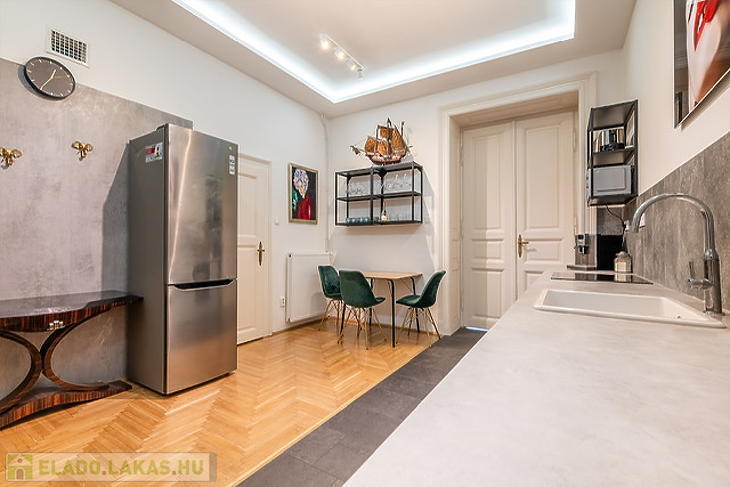 Budapest belvárosának egyik legkedveltebb utcájában, a VI. kerületi Ó utcában, eladóvá vált egy 73 négyzetméteres, 1. emeleti, kiváló állapotú lakás, amely nemcsak elhelyezkedésével, hanem elrendezésével is igazán különleges. Az ingatlan 2 tágas, világos szobával rendelkezik, amelyek egybe és külön is nyílóak – ezáltal tökéletesen alkalmazkodnak a különböző élethelyzetekhez, legyen szó otthonról, irodáról vagy vendégfogadásról. Továbbá 2 külön fürdőszoba szolgálja a lakók kényelmét, ami igazán ritka és praktikus megoldás. A lakás újszerű állapotban van, esztétikailag és műszakilag is kifogástalan. Modern burkolatok, minőségi nyílászárók, korszerű fűtésrendszer és kellemes, világos belső terek jellemzik. Az adatok tájékoztató jellegű.