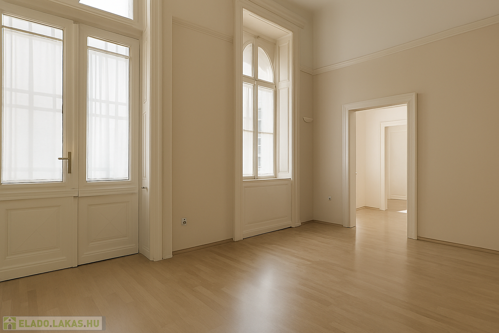 Budapest VI. kerületében, az Andrássy út egyik legszebb, 1883-ban épült műemlék palotájában, eladó egy 81 m²-es, első emeleti lakás.