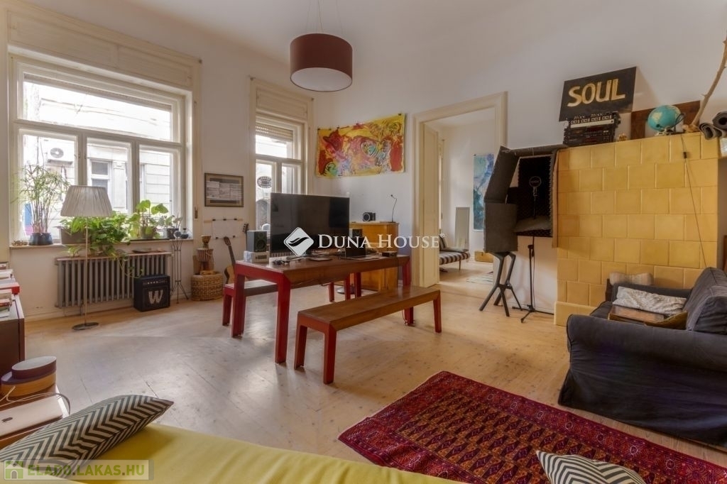 Eladó egy különleges atmoszférájú, 100 m²-es lakás Budapest VI. kerületében, a Mozsár utcában.