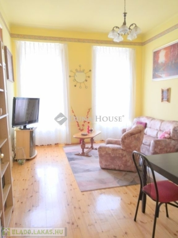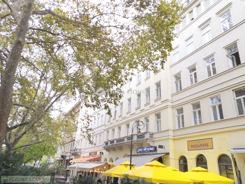 A VI. kerület egyik leghangulatosabb részén, a sétálóutcává alakított, parkos Liszt Ferenc téren, a Zeneakadémia, és a Világörökség részét képeező Andrássy út szomszédságában, kívül-belül gyönyörű állapotú, patinás, impozáns társasház 3. emeletén (lift természetesen van) eladó egy 54m2-es, nappali + 2 különnyíló hálószobás, napfényes, csendes, rendezett, belső parkra néző, kiváló elosztású, polgári értékeinek megőrzése mellett felújított lakás.