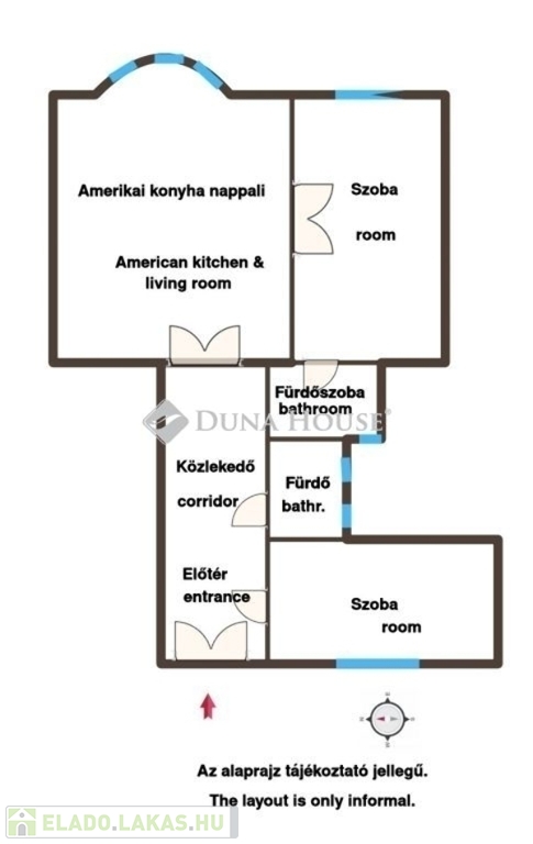 A lakás elosztása: tágas amerikai konyha -étkező- nappali, mindkét hálószobához tágas fürdőszobákkal.