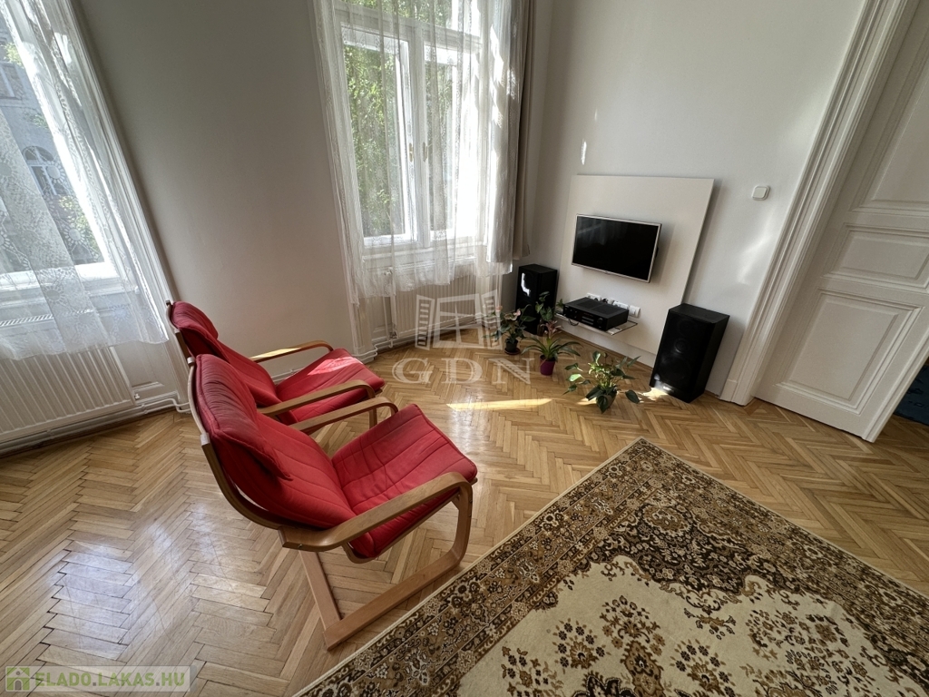 Eladó a Vl. kerület egyik kedvelt utcájában, a Podmaniczky utcában, egy 92 m²-es, 3+1 félszobás, kiváló állapotú, dupla komfortos lakás