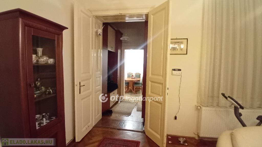 A lakásban három nagy szobából kettő az ucára, egy az udvarra néz. A fürdőszobája is méretes, kád és tusoló is található benne. A WC külön bejáratú. Jól felszerelt konyhája egyben van az étkezővel. A konyhából egy nagy kamra nyílik, amiből még egy kis spejzba jutunk. A fűtést gáz-cirkó kazán biztosítja. Négyméteres belmagassága miatt kiválóan galériázható.
