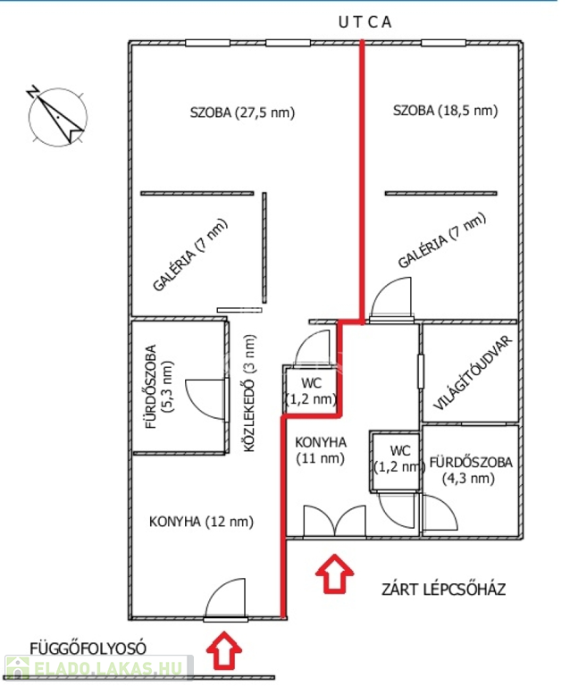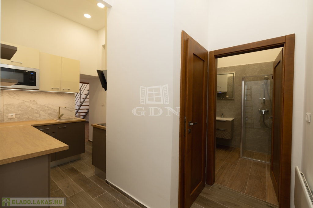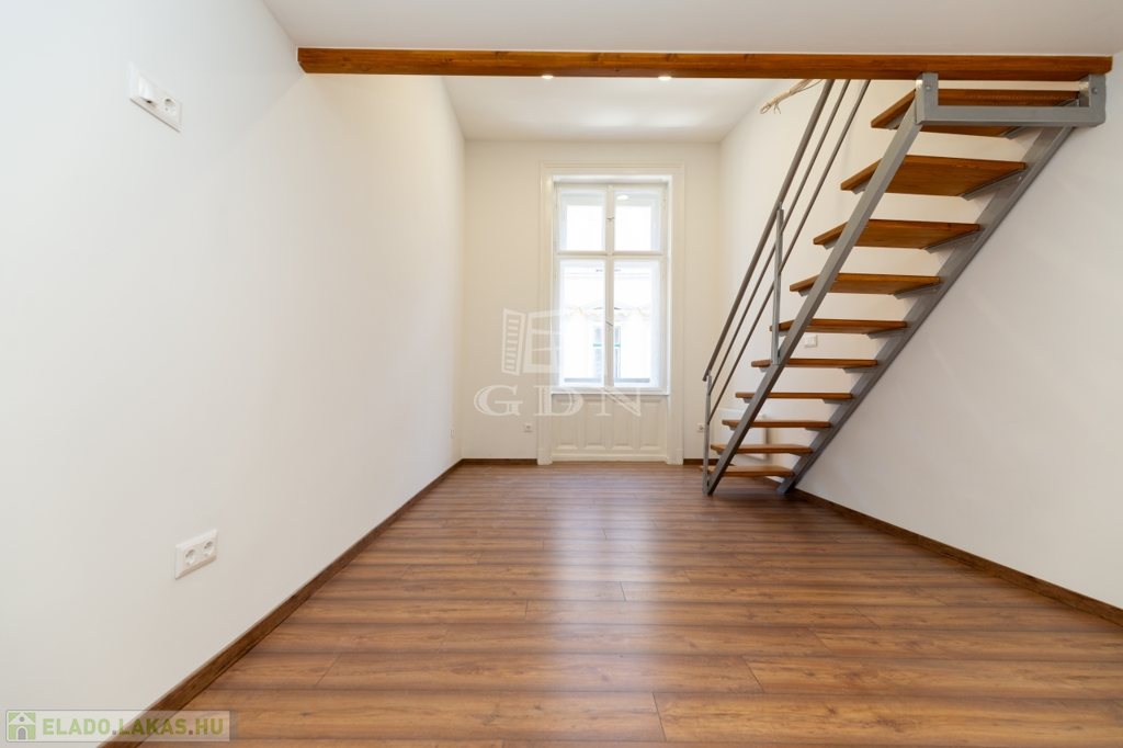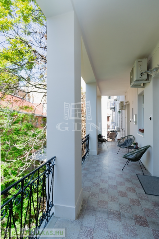 Fényárban úszó, jó elrendezésű (átalakított), igényesen és teljes körűen felújított, két lakássá alakított ingatlan eladó. Az egyik lakás közvetlenül a frissen renovált lépcsőházból nyílik, a másik függőfolyosóról, mely szélességéből adódóan erkélyként is funkcionálhat - egy madárcsicsergős, belső kertre néz.