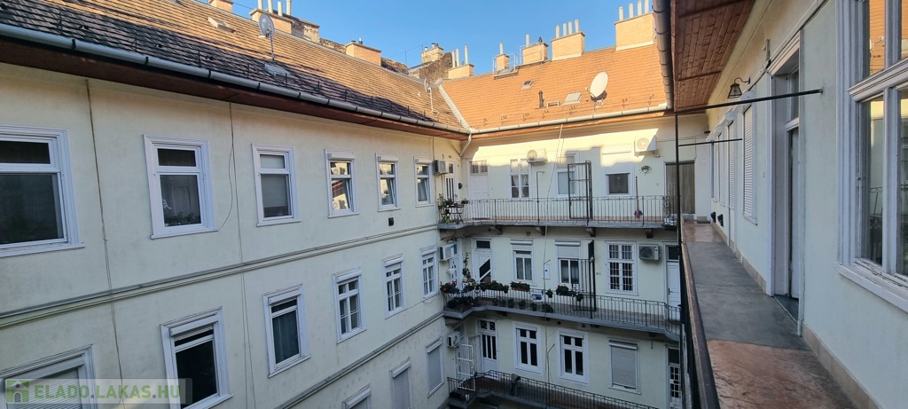A lakás körfolyosóról nyílik, a körfolyosóra csak a bejárati ajtó néz, a nappali és két háló a Szív utcára (ezek a helyiségek északkeleti tájolásúak), egy háló pedig az Aradi utcára néz (nyugati tájolású).