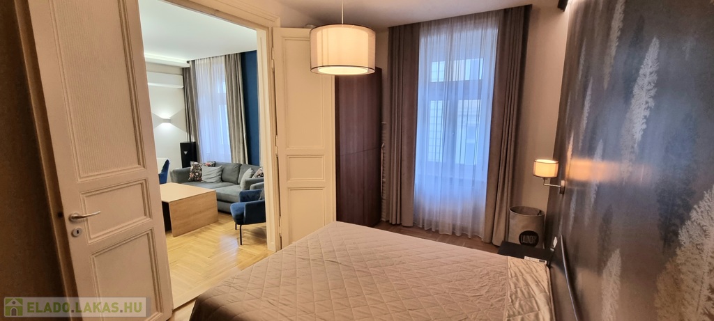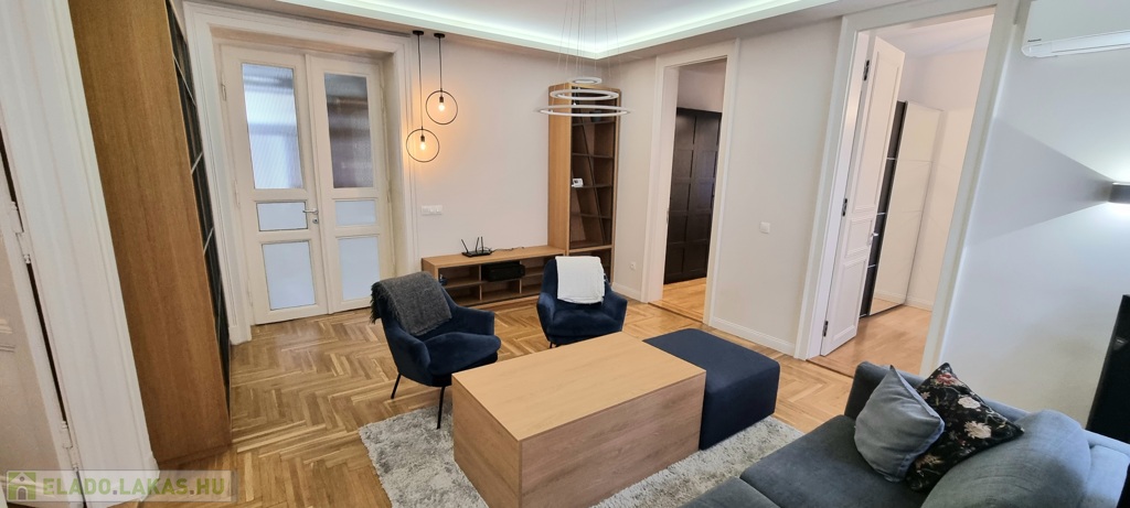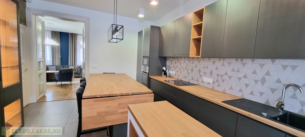 VI. kerület, Andrássy út sarkánál, Szív utca 28 szám alatt eladó tehermentes, azonnal birtokba vehető, 1/1 tulajdonban lévő, teljeskörűen és magas színvonalon felújított, lakberendező által megálmodott, bútorozott, kifogástalan állapotú, 3. emeleti, modern, igényes, 88 nm-es, nappali + 3 hálós saroklakás jó állapotú épületben.