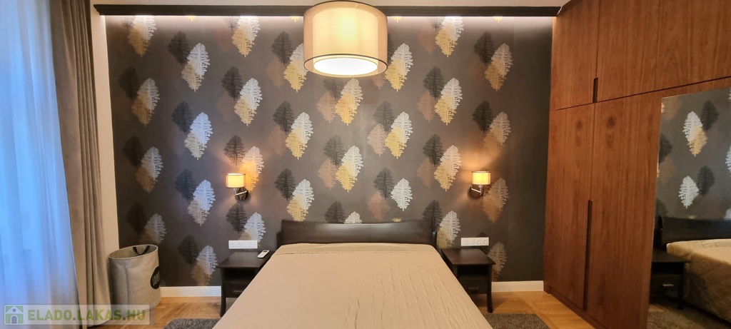 A nagyobb hálószobában két beépített nagyméretű gardróbszekrény is segíti a könnyebb tárolást.