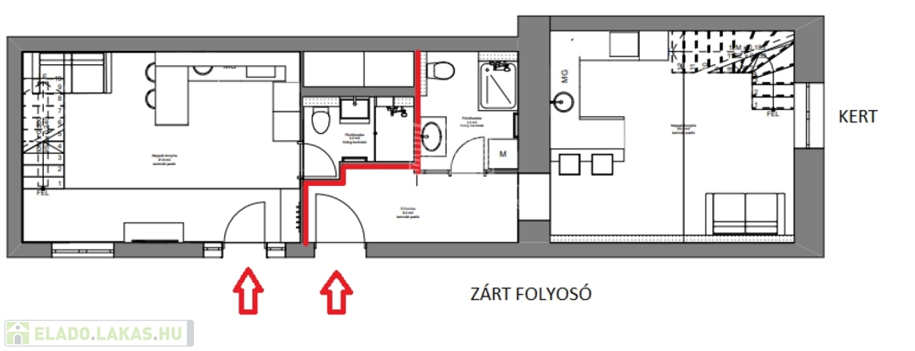Tulajdoni lap szerint az ingatlan 62 négyzetméter, de az átalakítás során a hasznos alapterület 95 négyzetméter lett.