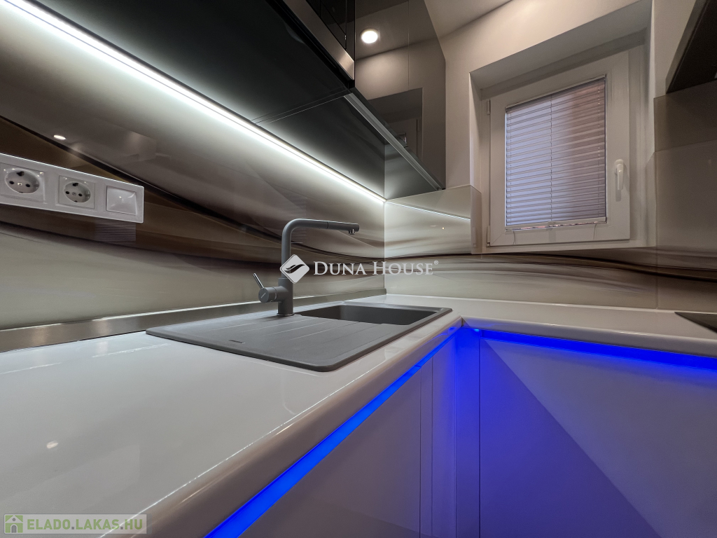 Modern designos, belső kétszintes lakás Budapest VI. kerületében