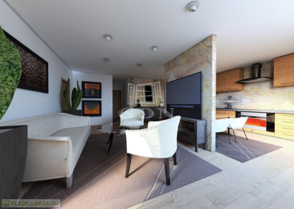 Az apartmanban a konyha és a nappali együtt alkot egy egységet.