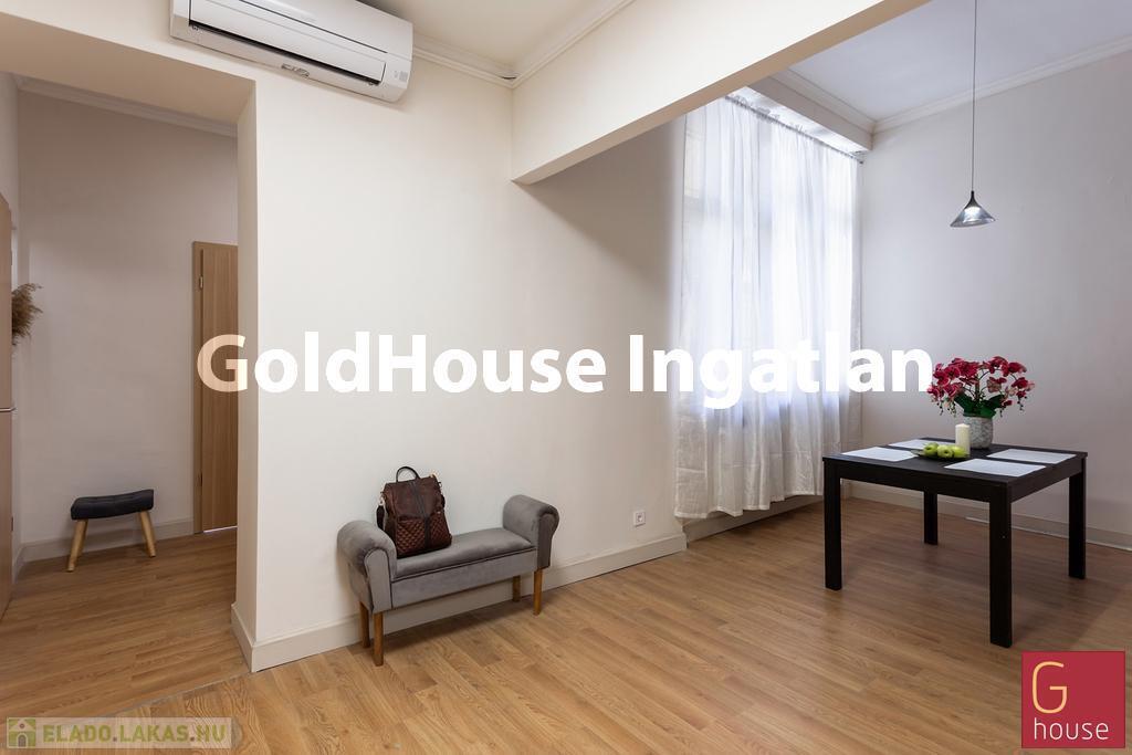 Budapest VI. kerületében, a Teréz körút egyik legjobb szakaszán kínálunk eladásra egy 118 m²-es, négy szobás, első emeleti, duplakomfortos lakást.