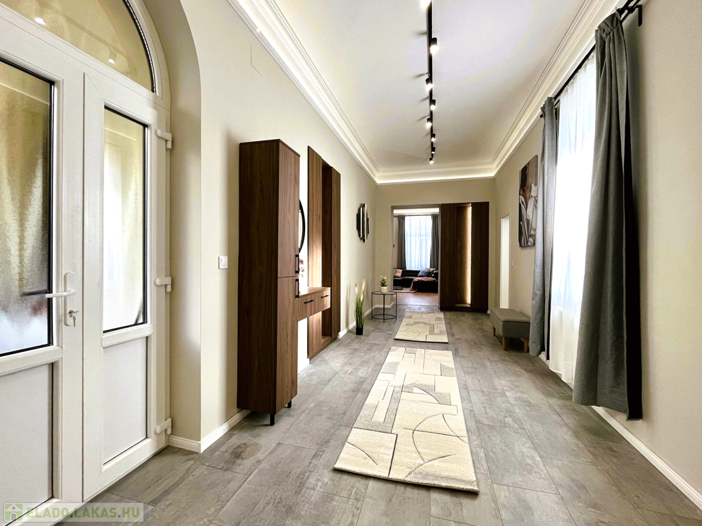 eladásra egy 126 m2-es, teljeskörűen felújított, harmadik emeleti, keleti tájolású, elegáns