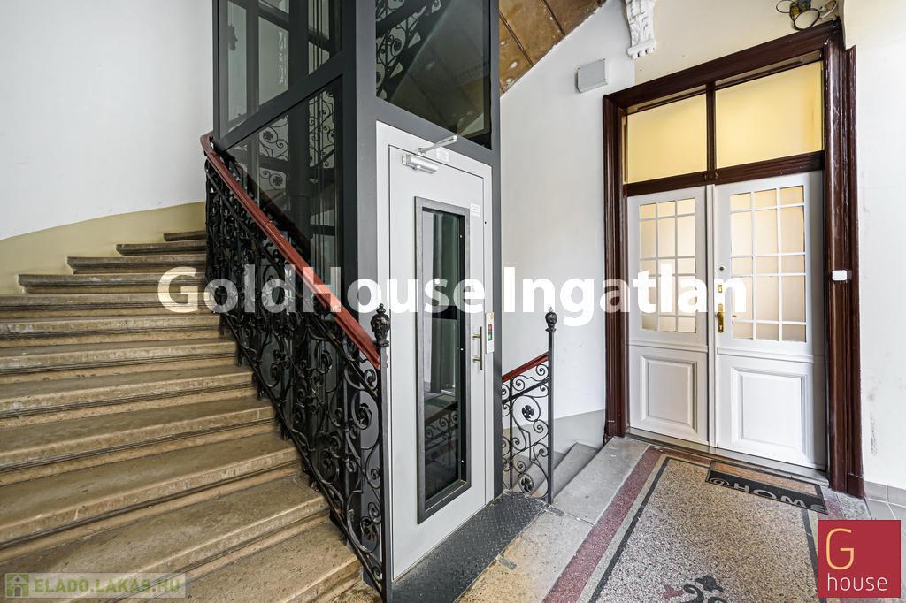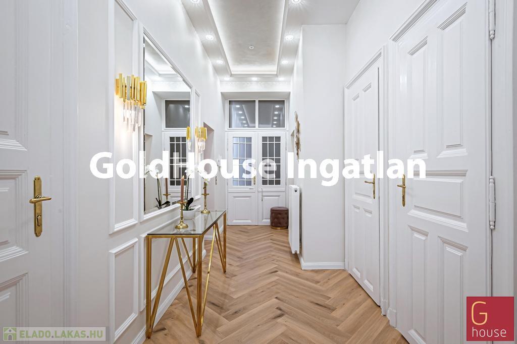 A tágas, világos otthonban nappali, három hálószoba és egy félszoba kapott helyet, a magas belmagasság és az igényes anyaghasználat elegáns, nagypolgári hangulatot teremt. A lakás délkeleti tájolású, utcai kilátással rendelkezik, fűtése gázcirkó, a hűtésről klímaberendezés gondoskodik, a fürdő és a WC külön és egyben is kialakított.