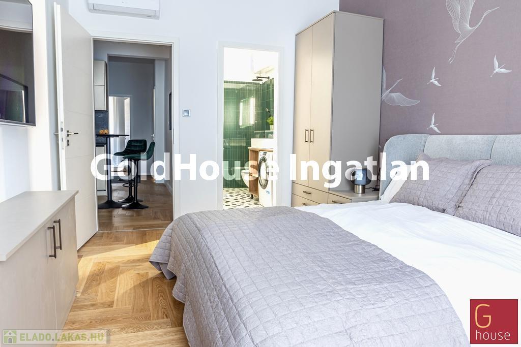 A lakás teljeskörűen felújított: megújult a gépészet és az elektromos hálózat, új külső és belső nyílászárók kerültek beépítésre, a halszálkás fa parketta elegáns karaktert ad a térnek, a külön helyiségben elhelyezett konyhát Bosch gépek teszik teljessé.