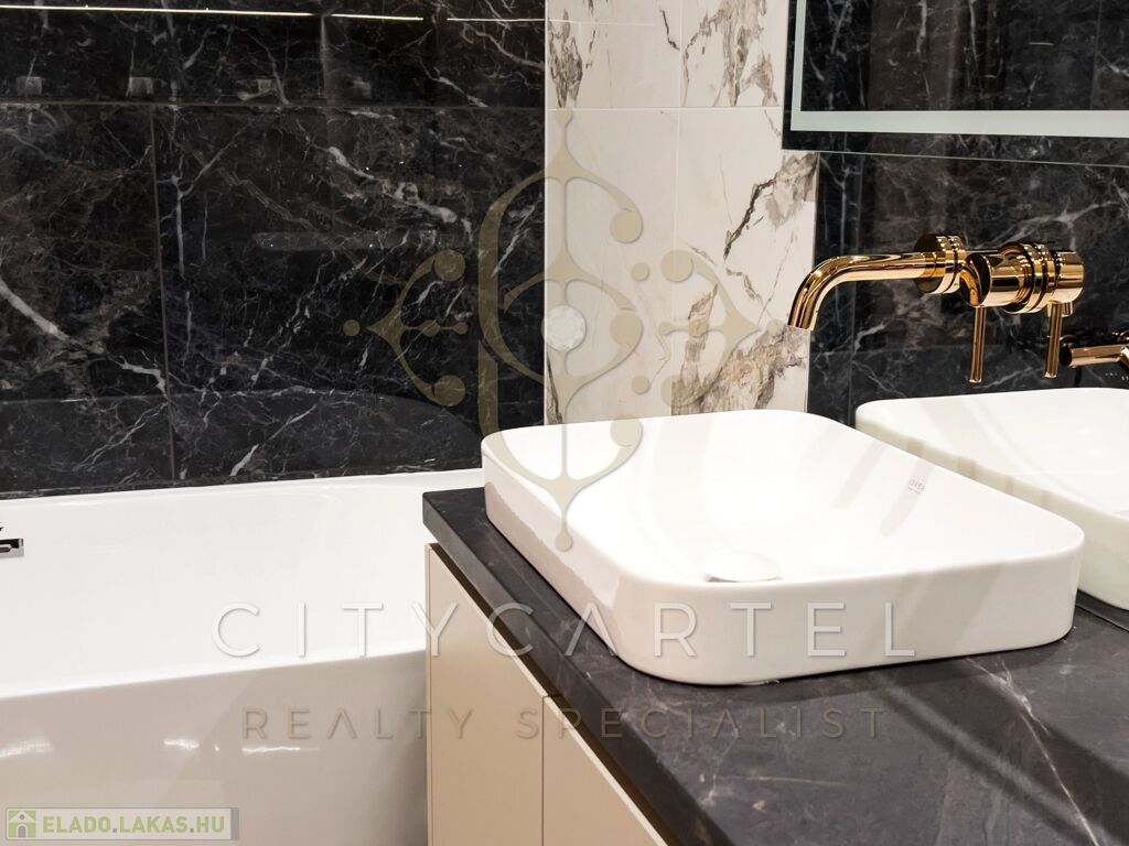 A fő hálószoba saját, kádas fürdőszobával és WC-vel rendelkezik, ezen felül pedig egy második, zuhanyzós fürdőszoba is a lakás része, szintén WC-vel.