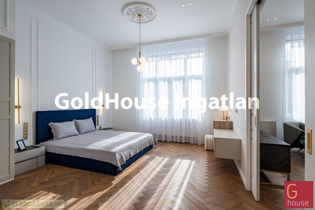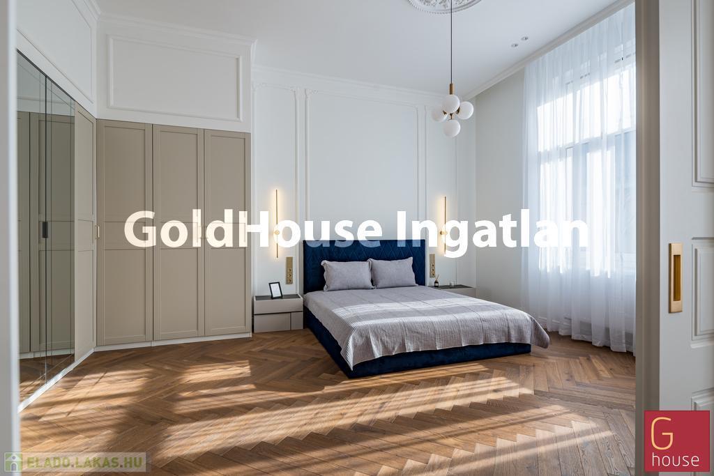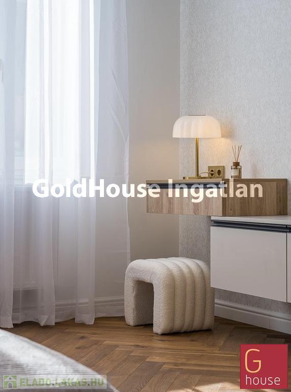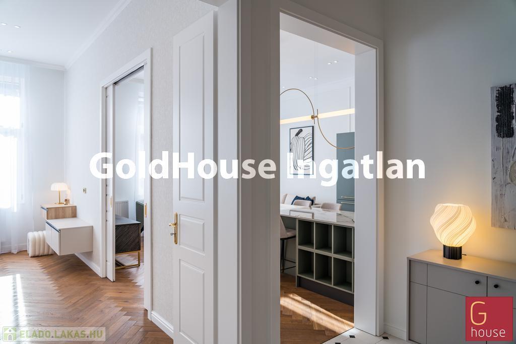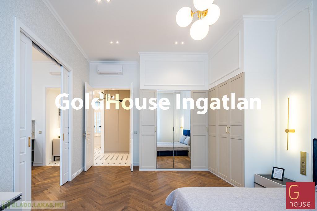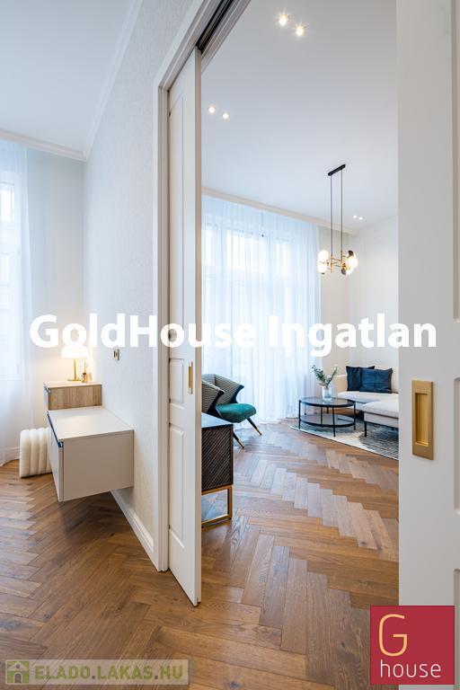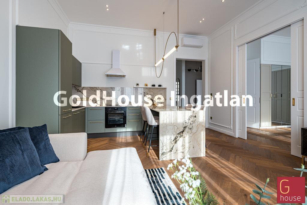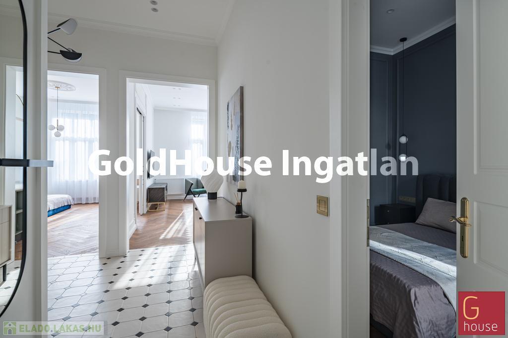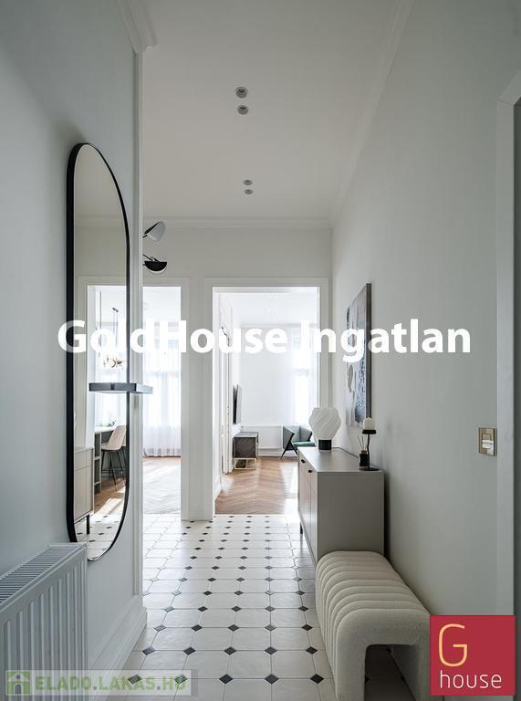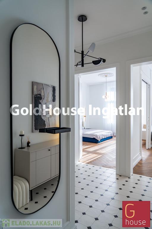 A lakás teljes körű belsőépítészeti felújításon esett át, ahol a klasszikus nagypolgári stílus tökéletesen ötvöződik a modern, letisztult designnal. Prémium minőségű anyagok kerültek beépítésre: spanyol burkolatok, egyedi olasz konyhabútor Neolith kő munkapulttal, eredeti fa parketta és felsőkategóriás gépészet. Az ingatlan teljesen bútorozottan és gépesítve kerül eladásra, így az új tulajdonos azonnal birtokba veheti, felújítás vagy további beruházás nélkül.
