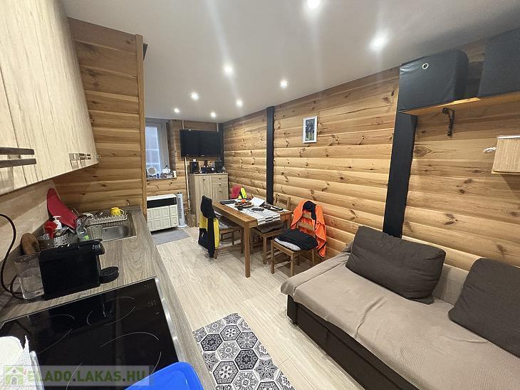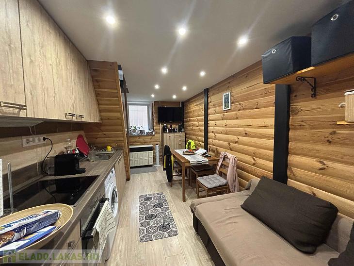 Az ingatlan 19 m² alapterületű, amelyet egy 17 m²-es, teljes belmagasságú állógaléria egészít ki – így a hasznos tér kényelmesen megnövekszik. A lakás okosan kialakított: a galérián tágas hálórész, a földszinten pedig nappali, konyha és zuhanyzós fürdőszoba található.