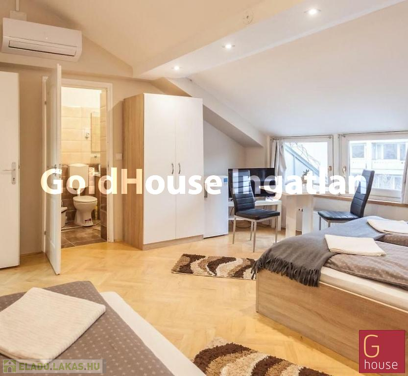A társasház legfelső szintjén és az ehhez kapcsolódó tetőtérben kialakított lakás összesen hat különálló lakrészből áll, ezáltal kiválóan alkalmas befektetési célra, akár hosszú, akár rövid távú bérbeadásra.